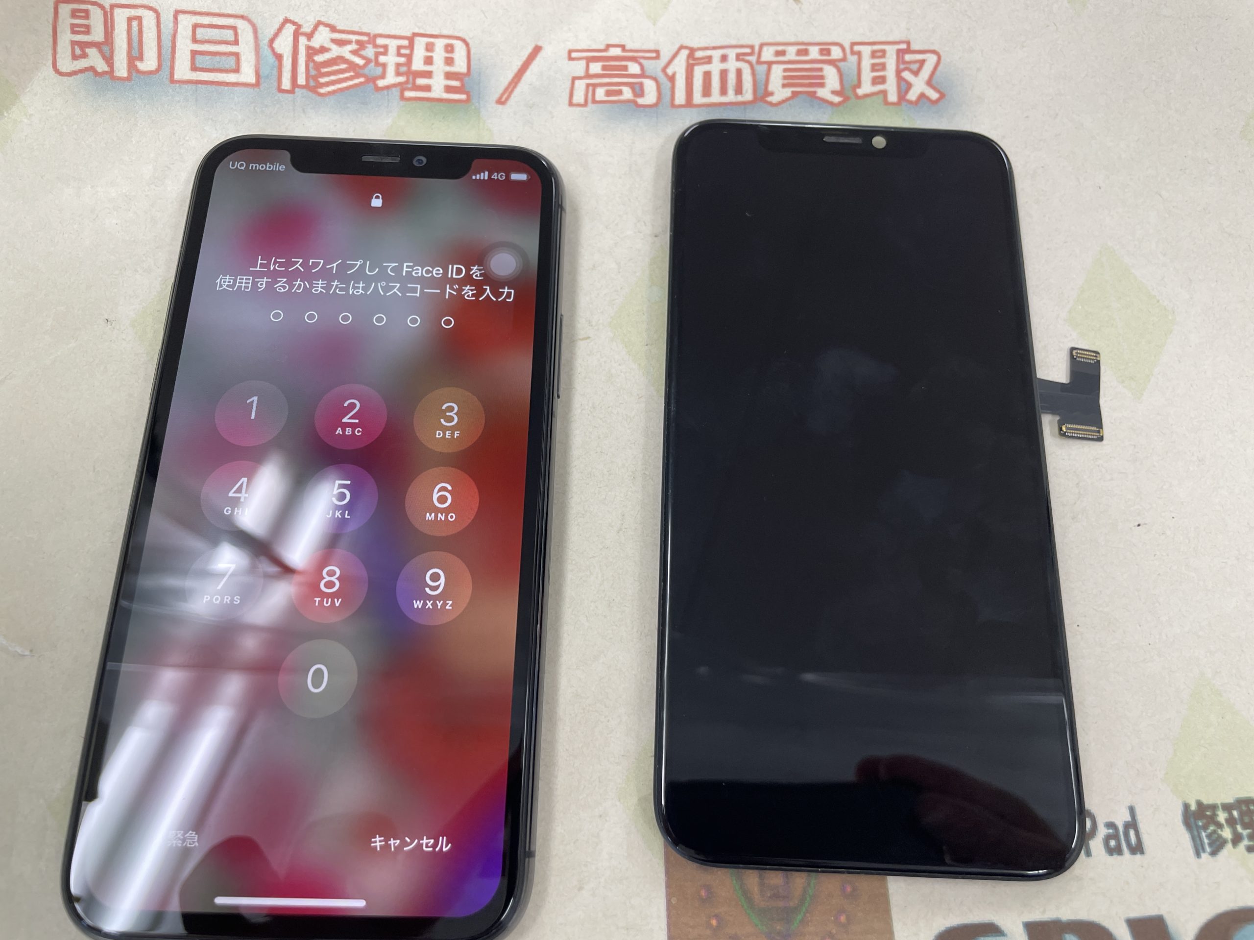 分解し内部確認すると目立った浸水跡はありませんでしたので画面のみ交換で修理完了です。