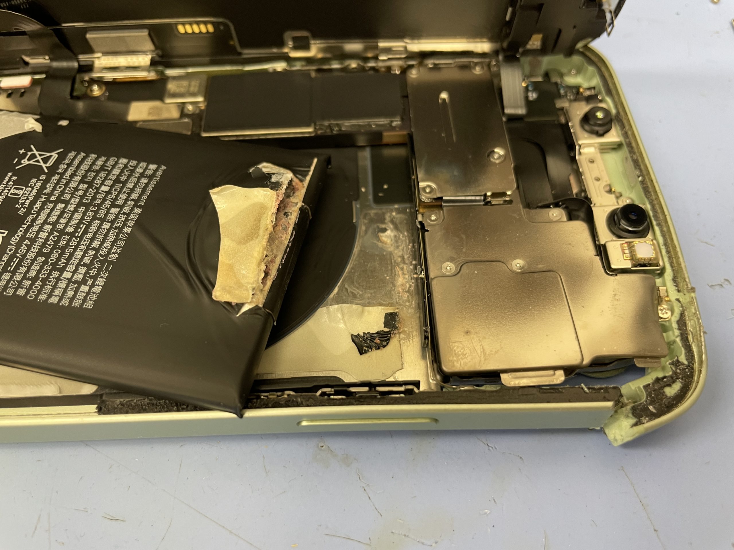 バッテリーが完全に損傷し破れ破損しているなど内部の状態も非常に悪いもののバッテリーを取り換えると無事に起動しました。