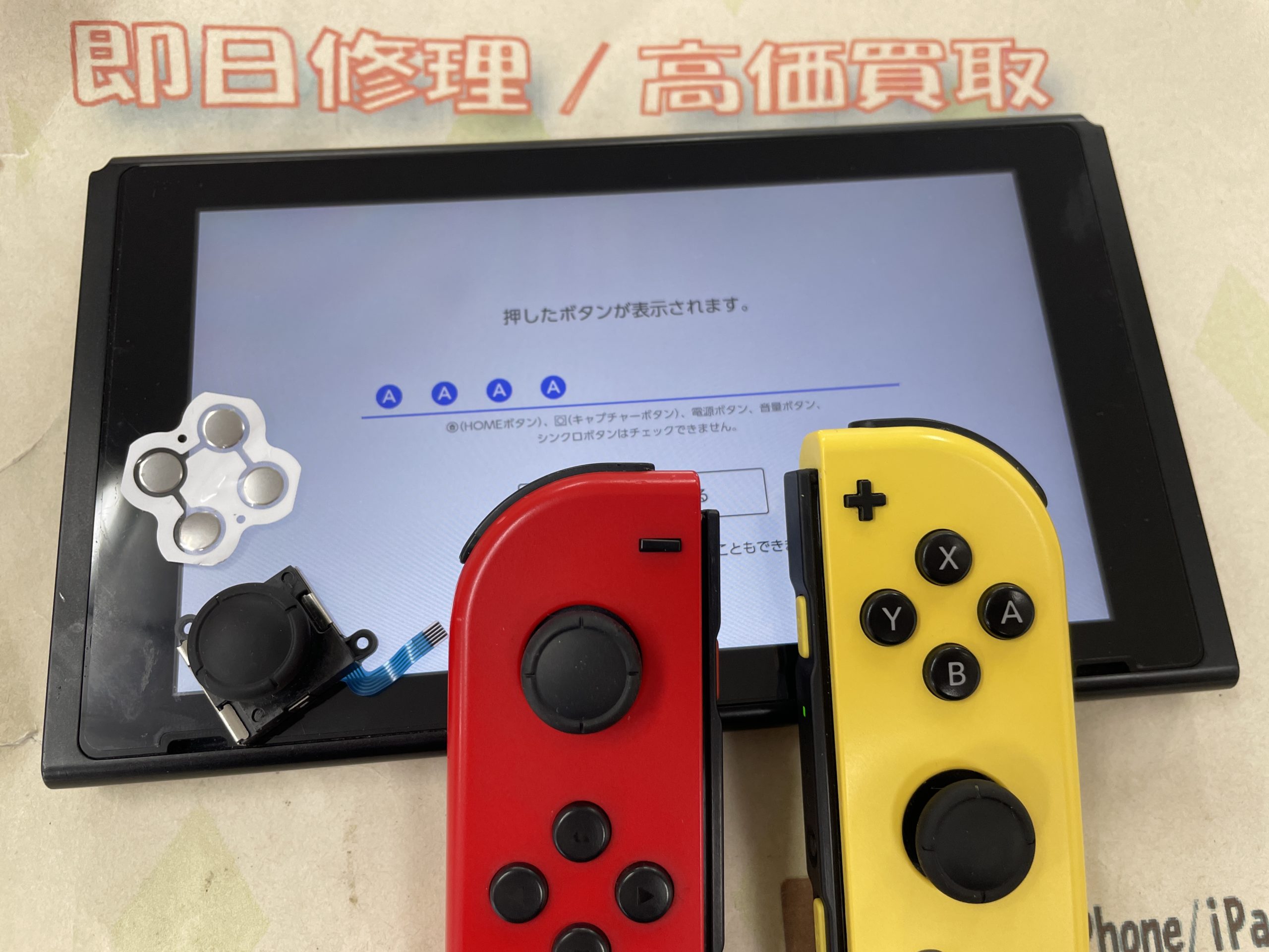 右側ジョイコンはAボタンを押しても反応せず強めに押すと反応する状態、左側のジョイコンは操作スティックが劣化し勝手に動いてしまう状態でした。