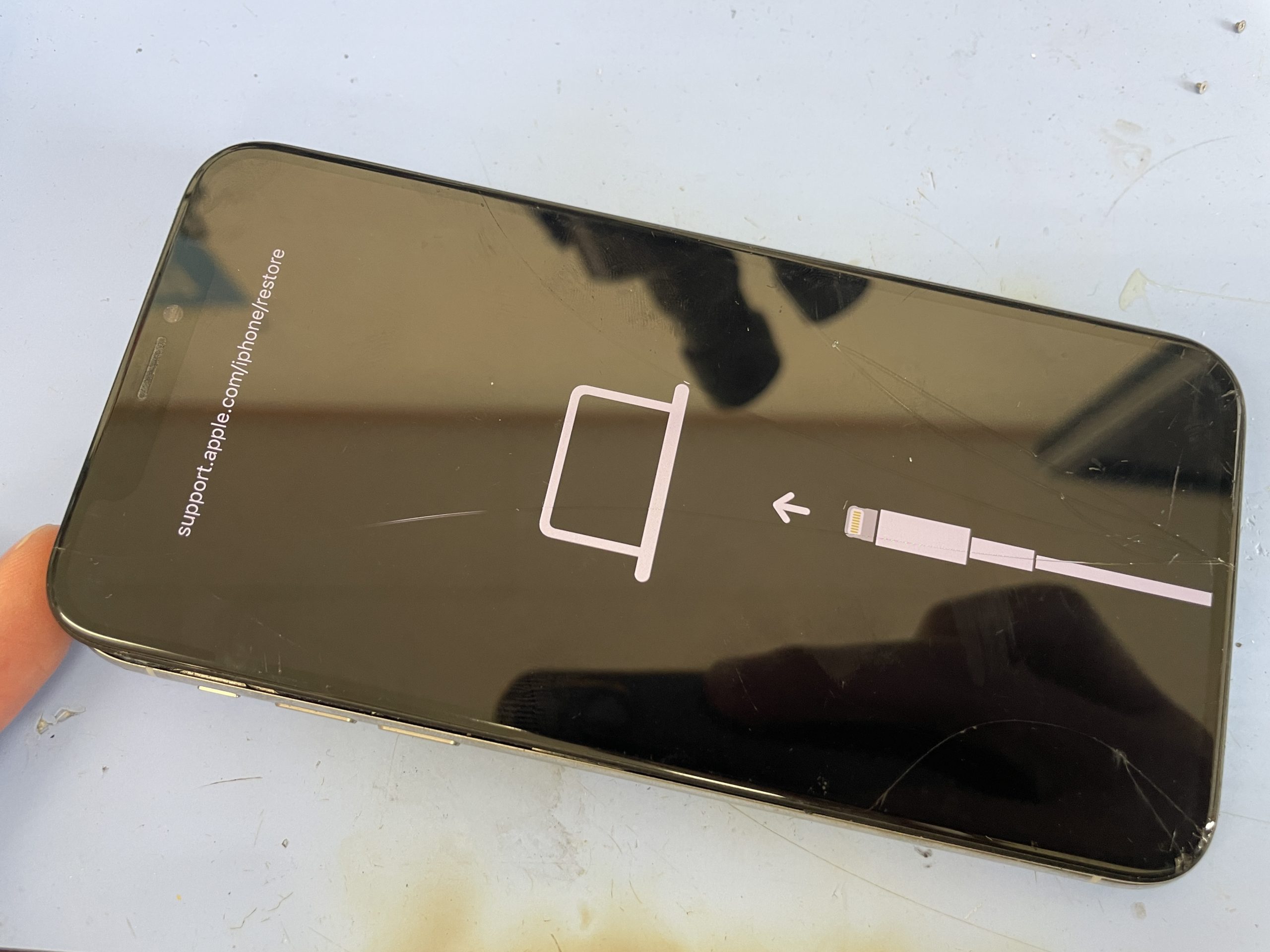 画面にパソコンへの接続を示すリカバリーモードとなりiTunesで復旧かけてもエラーが出て起動しないとご来店です。