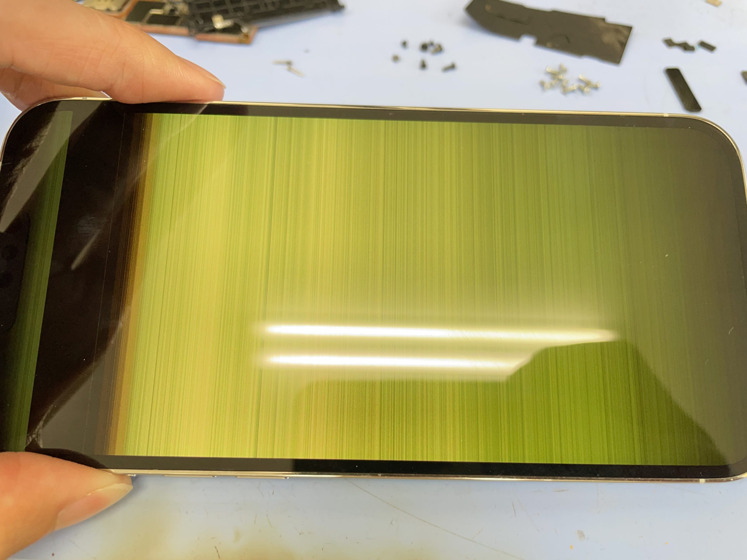 今回の端末は画面全体が黄色のノイズが点滅している状態でした。