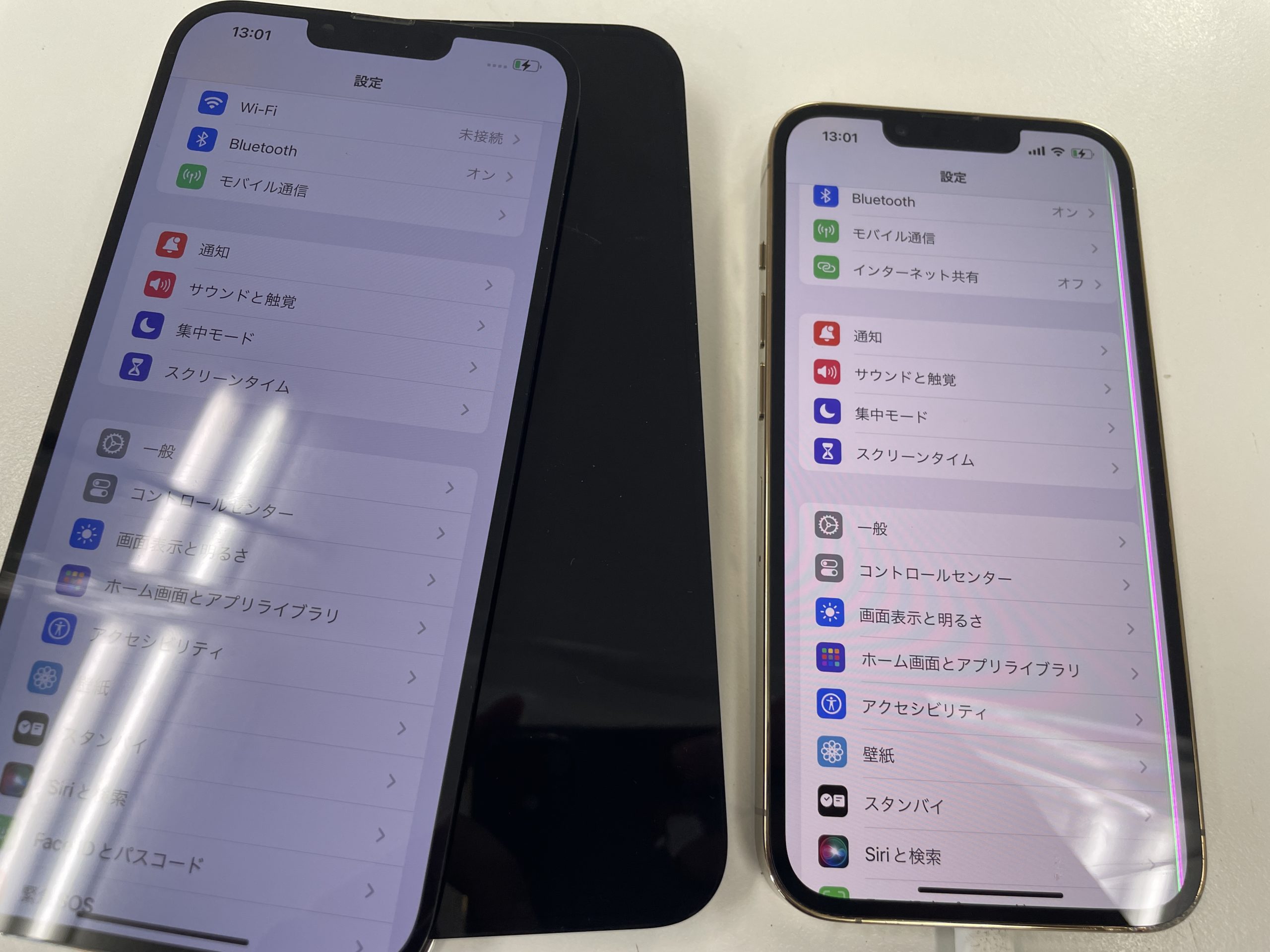 分解し当店のテスト画面を取り付けると正常に表示されましたのでデータのバックアップを作成しお持ち頂いた13Proにデータを移行させます。