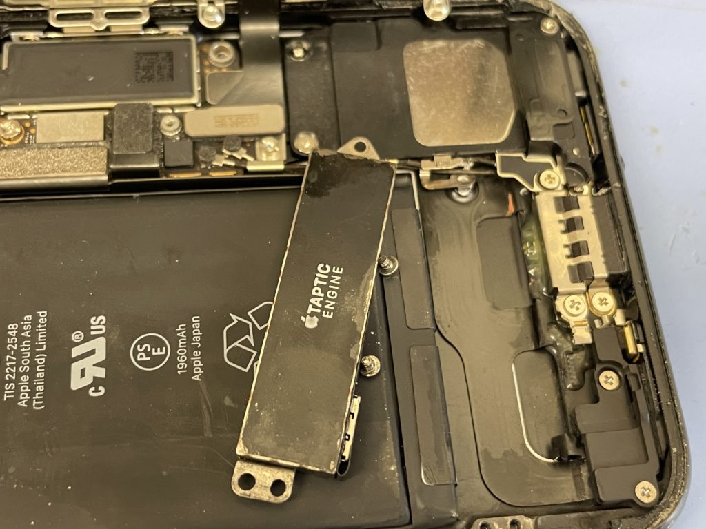 受付時に分解し内部確認を行うとバイブモーターを固定しているネジが3本とも緩み外れモーター自体も破損しておりました。