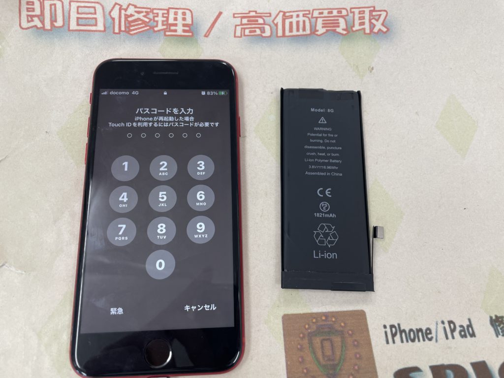 iPhone8 バッテリー交換 ¥6,800(税込)