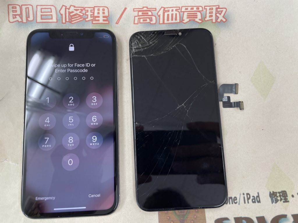 iPhone X ガラス割れ、表示不良 ¥10,800(税込)