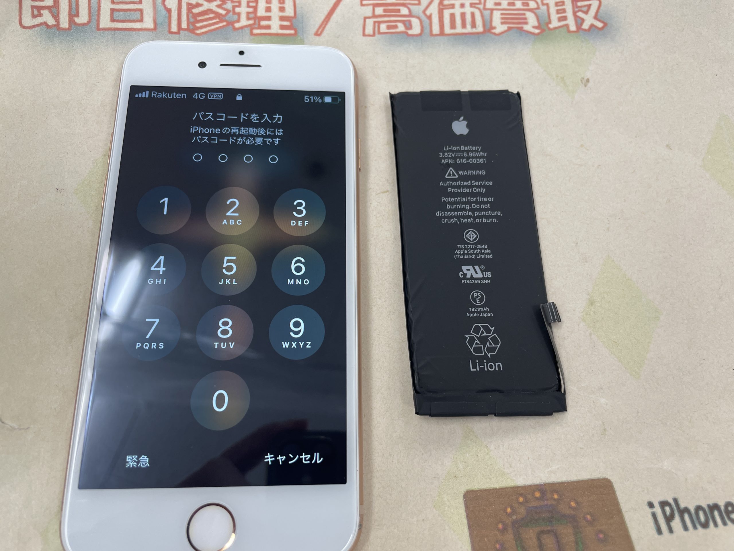 iPhone8 バッテリー交換 ¥6,800(税込)