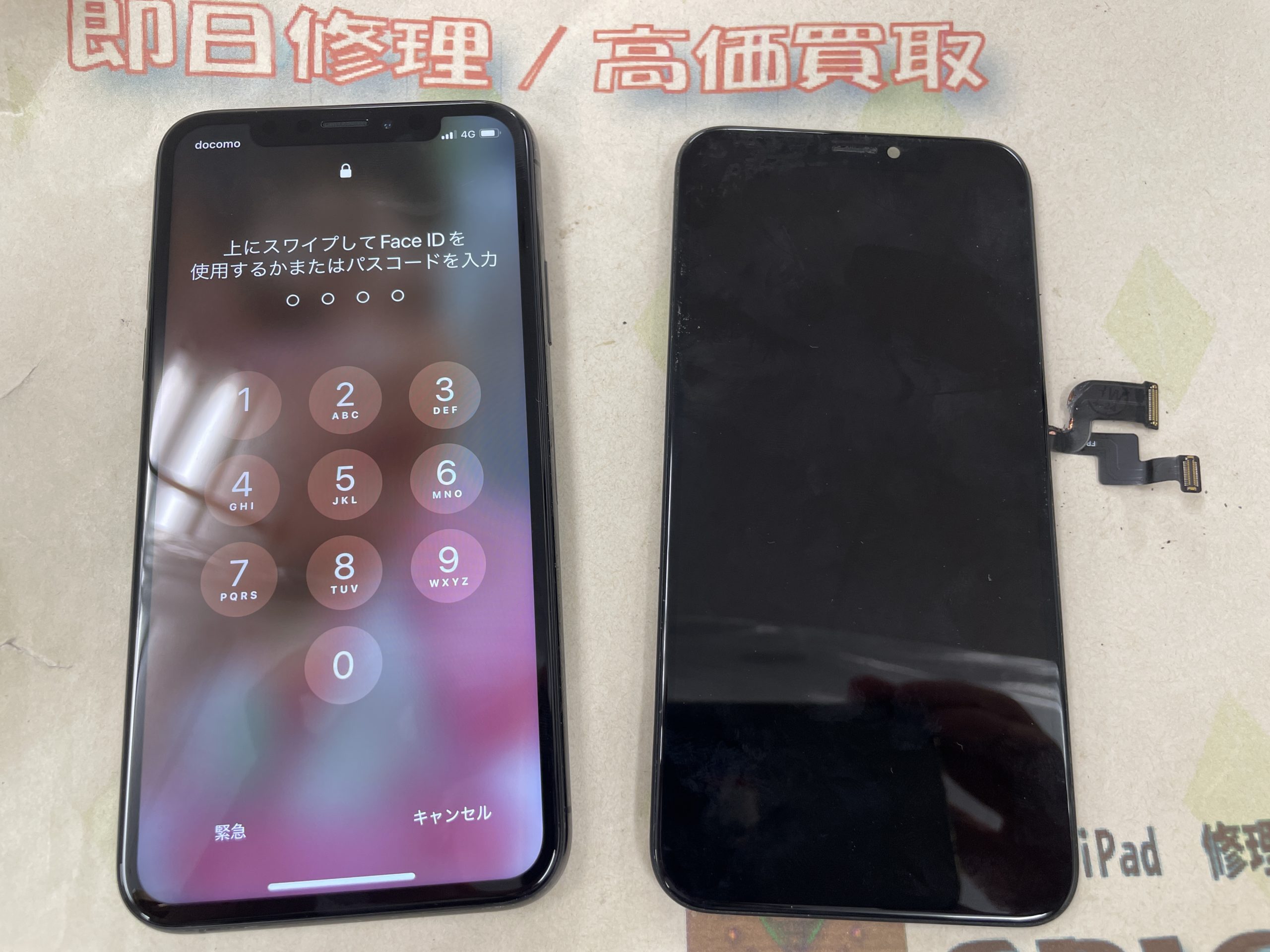 分解し確認すると画面パーツに損傷が見られましたので新しい画面に交換し15分程でデータそのまま修理完了です。