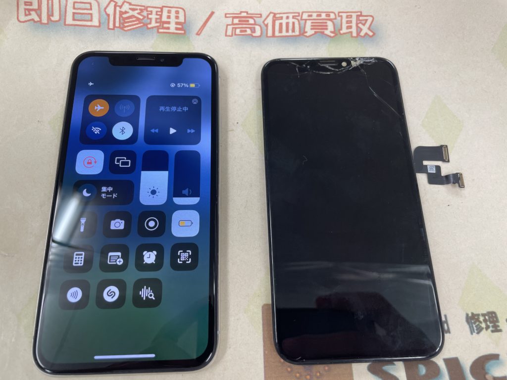 iPhone X ガラス割れ、表示不良→有機ELパーツ使用 ¥14,800(税込)