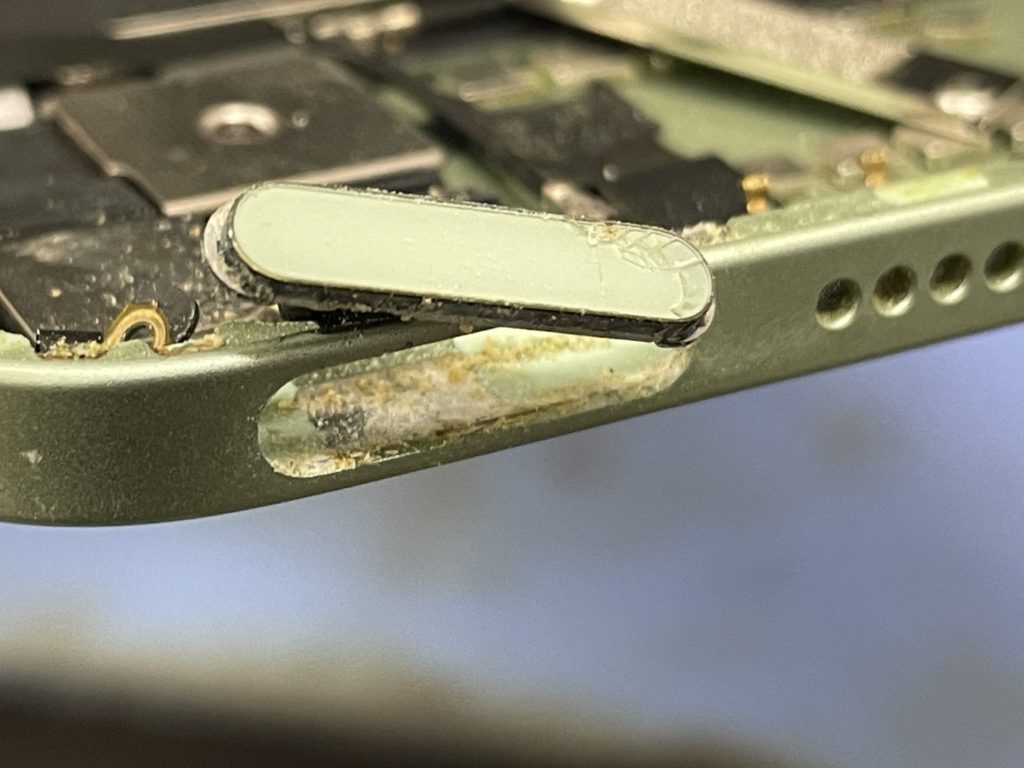 電源ボタン部分に内部から汚れが固く固着しているのが確認出来ましたのでクリーニングと調整作業を行ってから動作確認を行います。