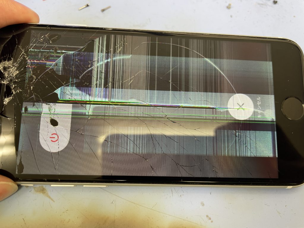 ガラス割れの影響で液晶不良となりタッチパネルも勝手に動いてしまう状態でした。