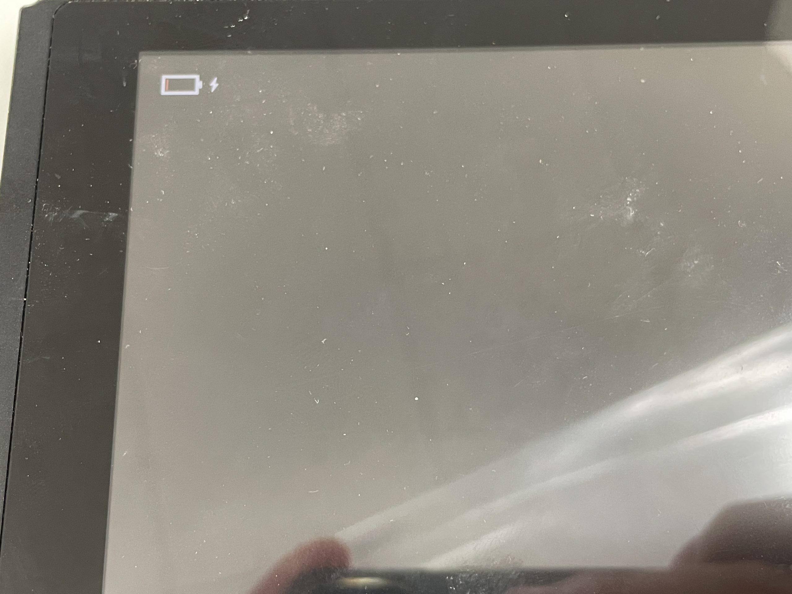 修理作業後に一通り組み戻し充電を行うと充電マークが表示され15分程すると問題なく起動し動作も問題ありません。