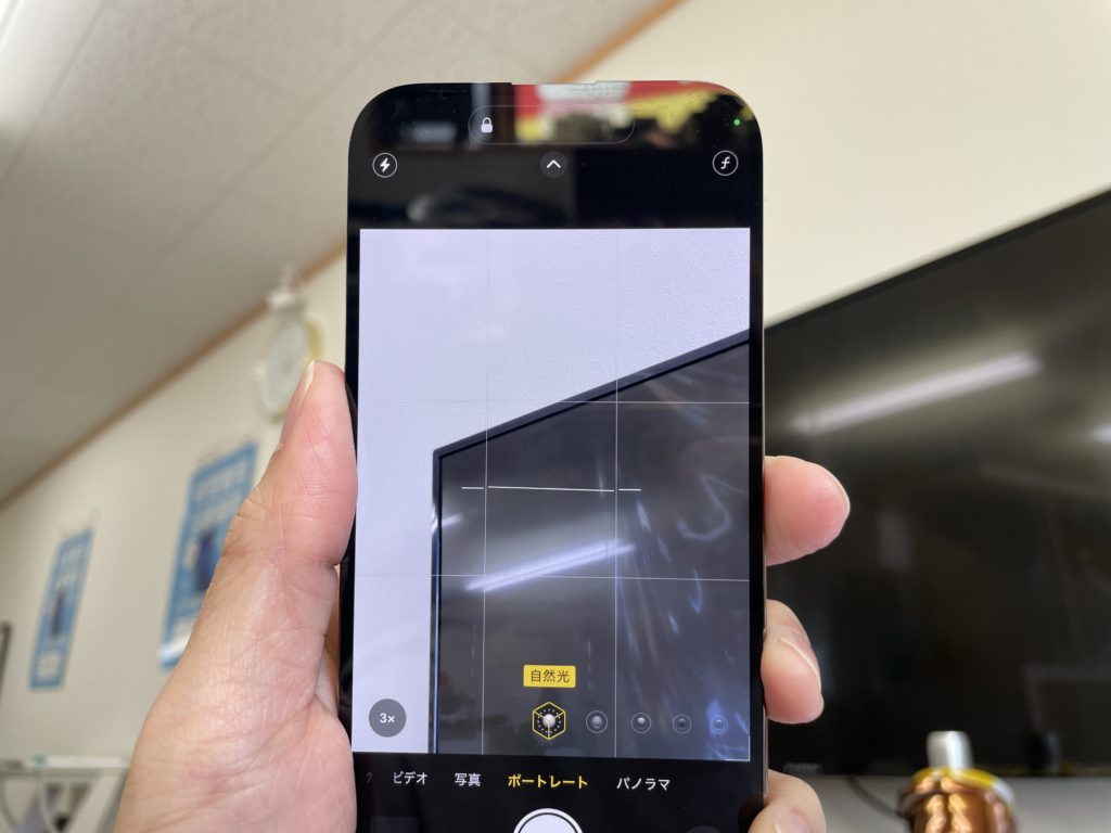 落下によりカメラの調子が悪く本来であれば0.5倍、1倍、2倍、3倍と倍率を変えるボタンが表示されますが1倍と2倍の表示しかなく、ポートレート撮影も通常1~3倍で倍率が選択出来ますが3倍が使用出来なくなっておりました。