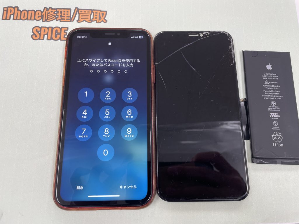 明石市よりiPhone XR ガラス割れ、バッテリー交換をご依頼いただきました。