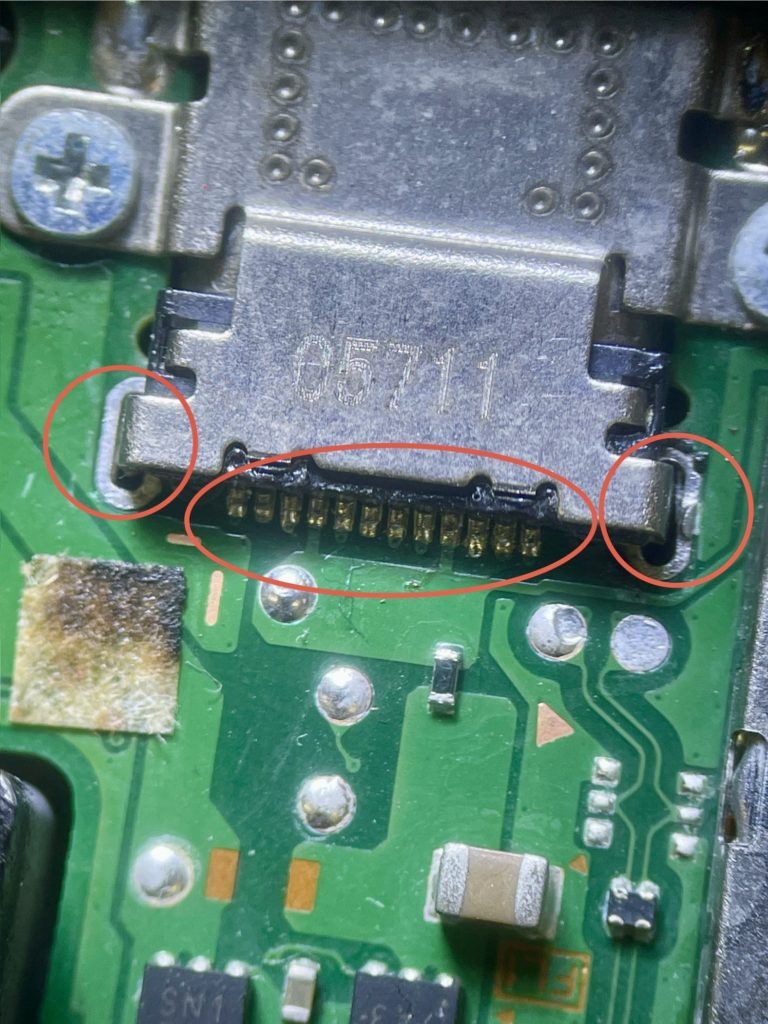 以前作業された店舗の作業レベルが非常に低く、水没判定のシールは黒く焦げておりコネクターの半田作業も素人が行ったかのようなガタガタの半田、コネクターの足部分は2カ所そもそも半田し忘れているなどで修理店として恥ずかしい作業内容です。