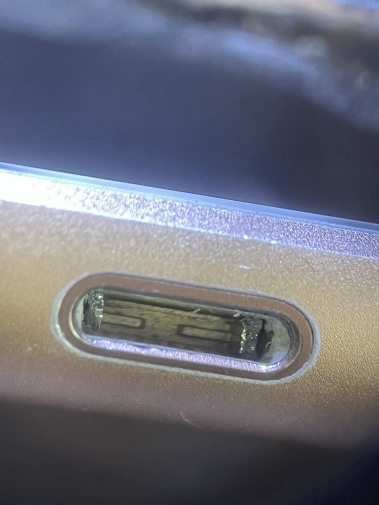 純正以外の安い充電ケーブルを使用するとこちらの状態になってしまうケースが多いのでご注意下さい。