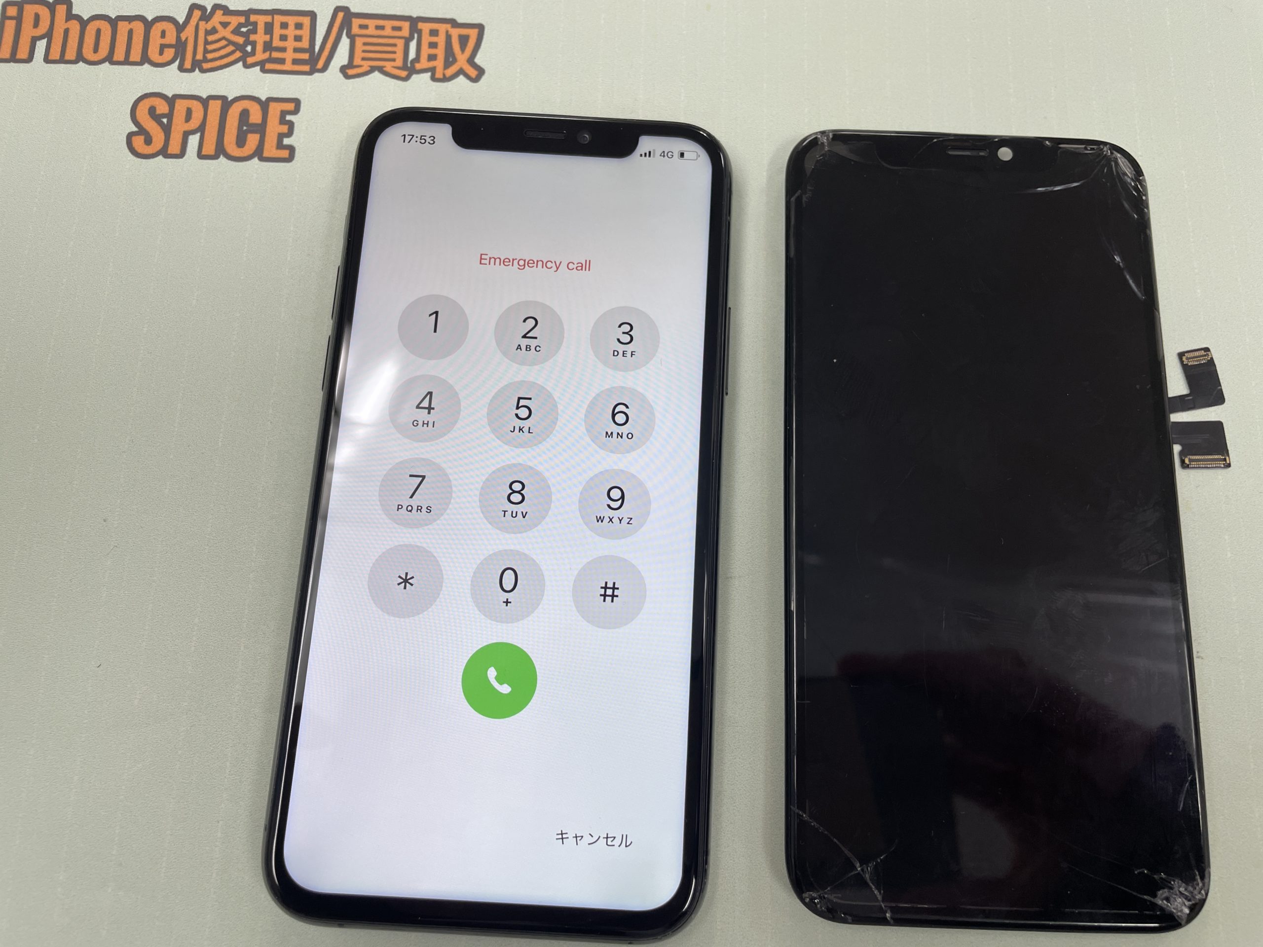 画面割れの影響でタッチパネルが全く反応せず使用出来ない状態ですが15分程で修理完了です。
