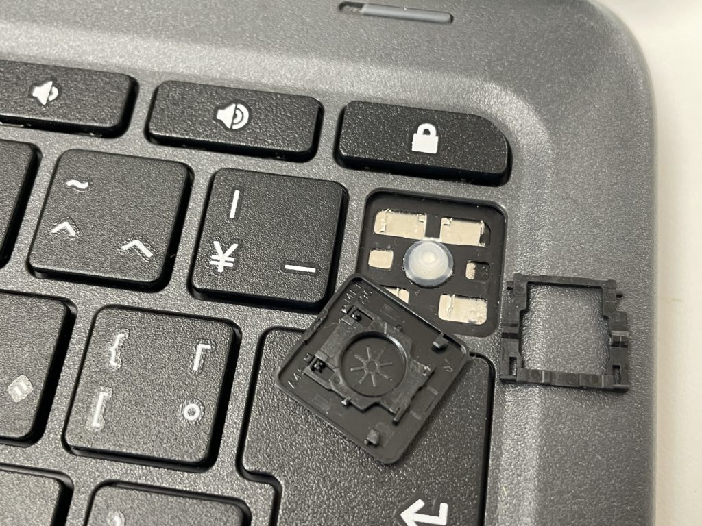 お子様が学校から支給されているパソコンとの事で爪をひっかけてキーボードの一部を取ってしまったそうです。