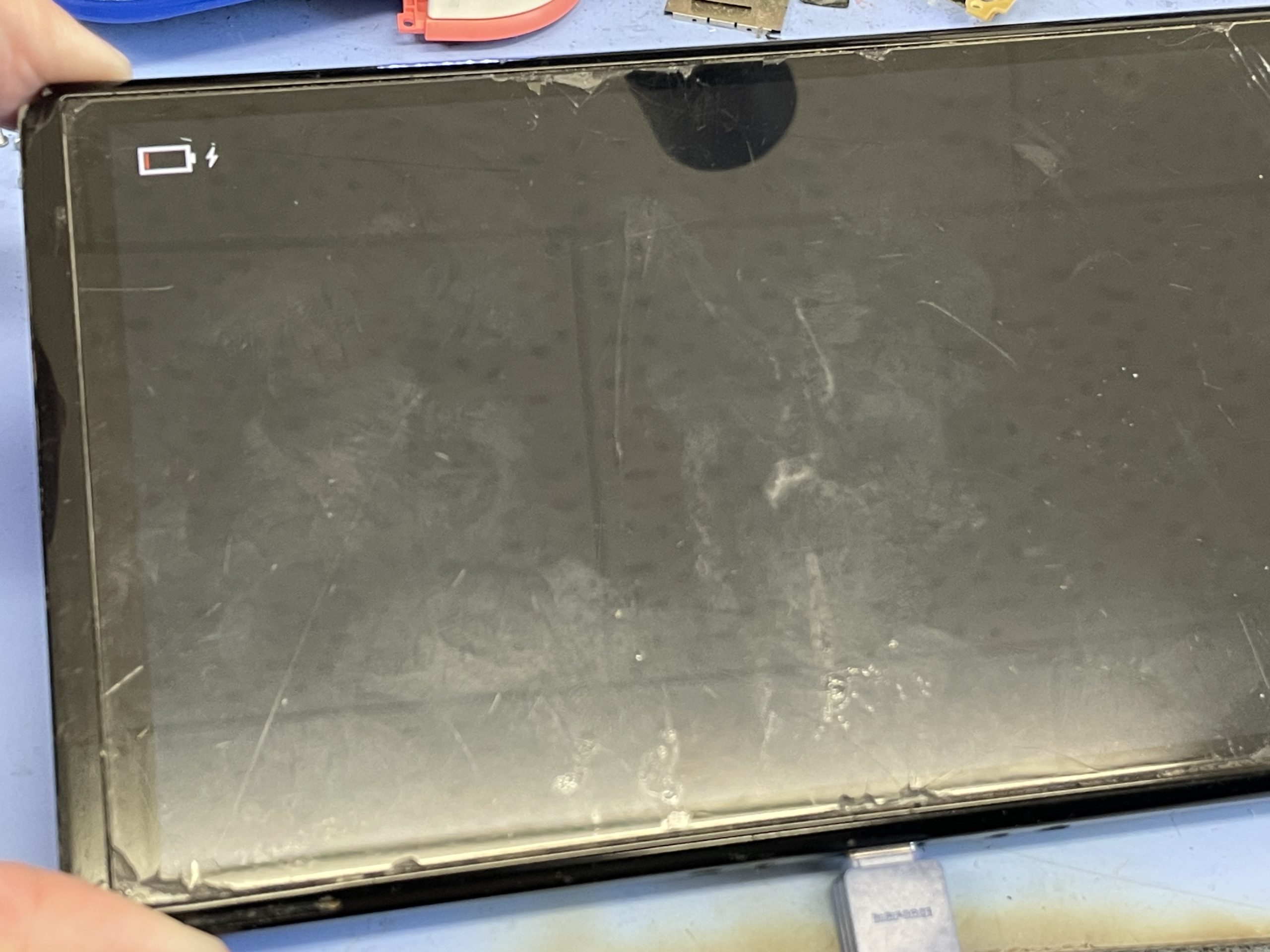 修理作業後に一通り組み戻し充電を行うと充電マークが表示され5分程すると問題なく起動し動作も問題ありません。