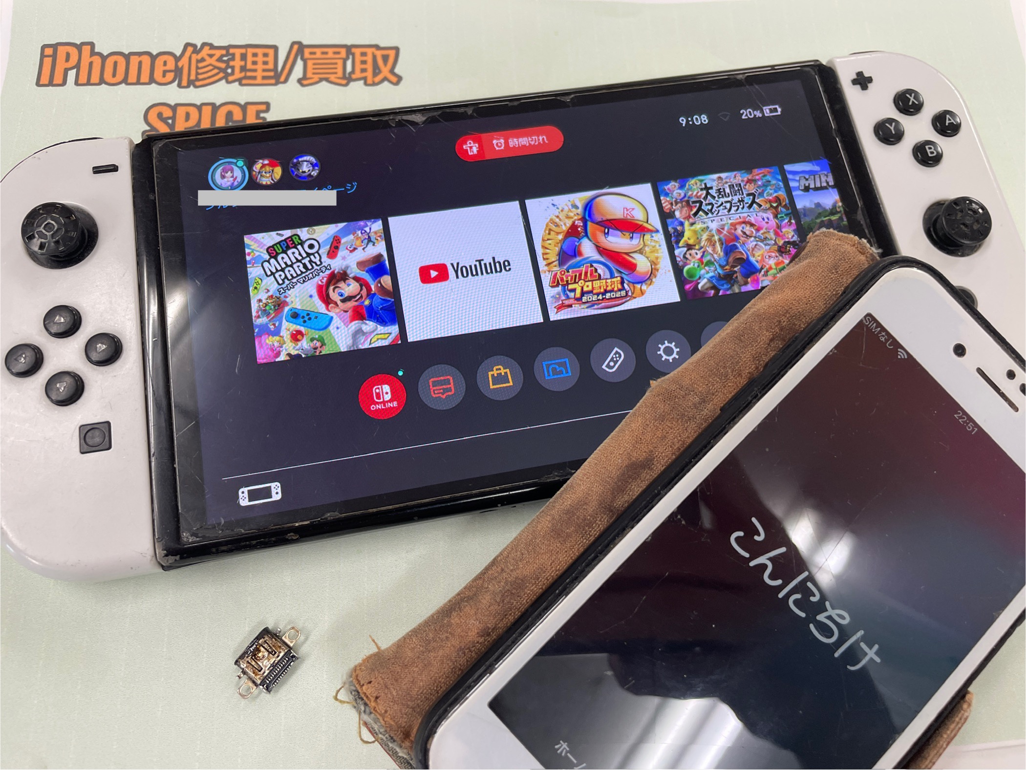高砂市より任天堂Switch 有機ELモデル 充電ケーブルが反応せず充電切れで起動しないとご依頼をいただきました。