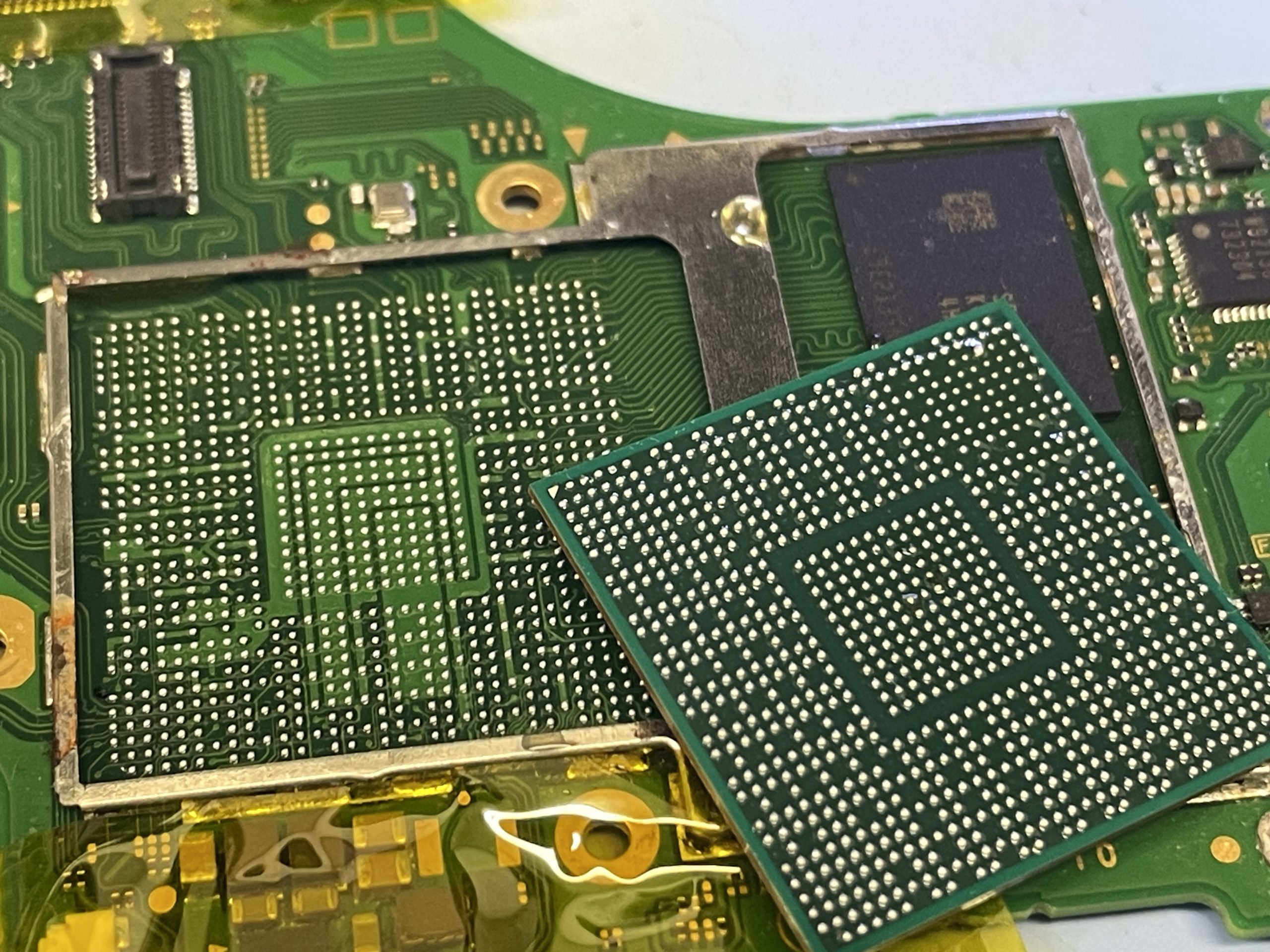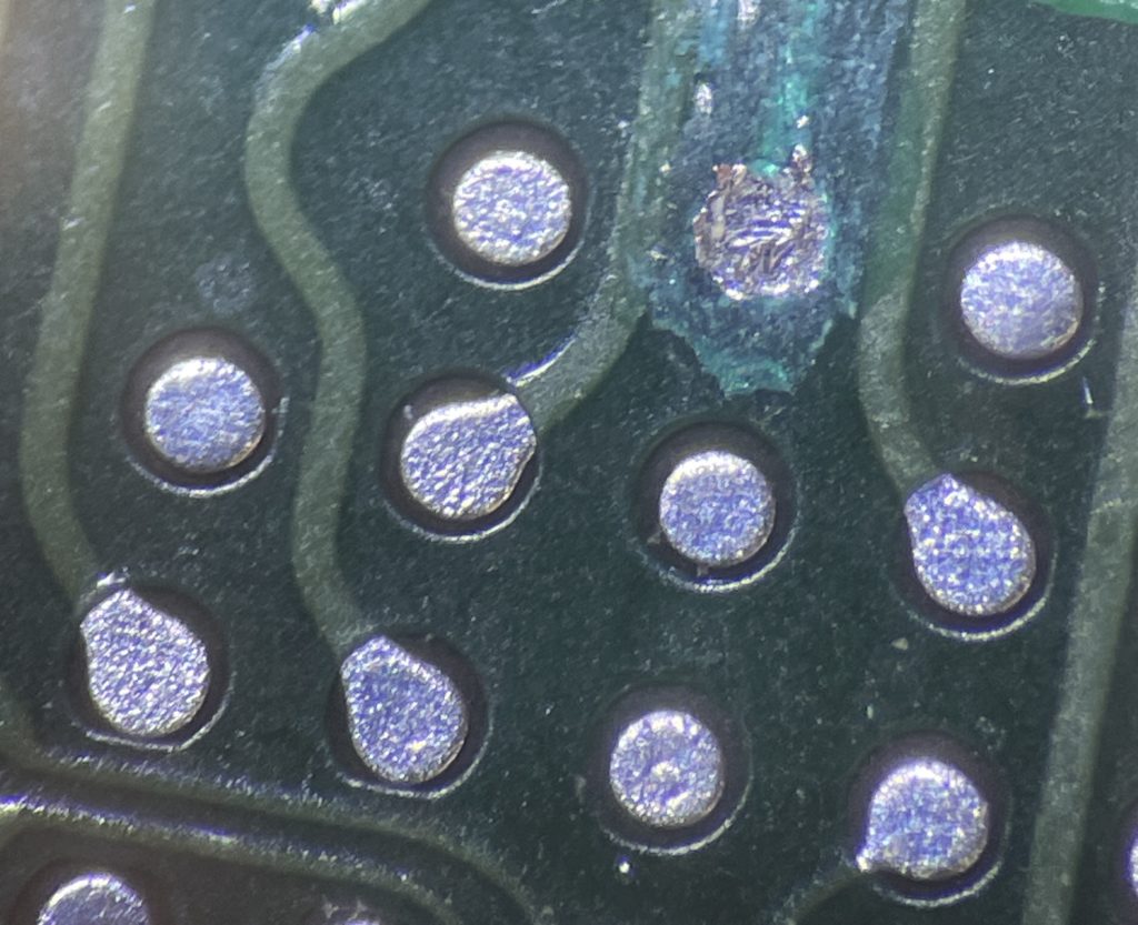 こちらの端末は基板側の接点が1カ所剥離して損傷している部分がありましたので今回のブルースクリーンはそれが原因のようです。