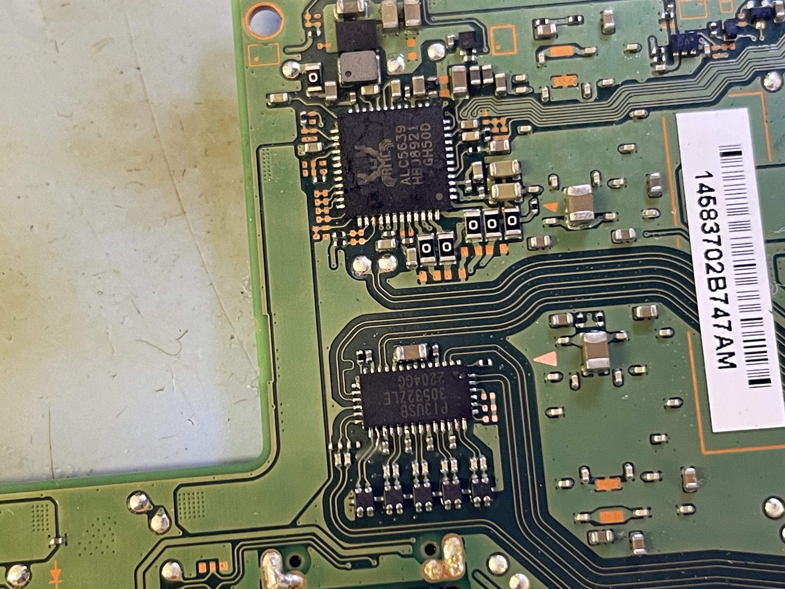 メイン基板に半田で実装されており24本のピンがありますがこの内の12本は半田ごてでは取り付け出来ない構造の為、高温の熱風で半田を溶かしながら取り外し及び取り付けする必要がございます。
