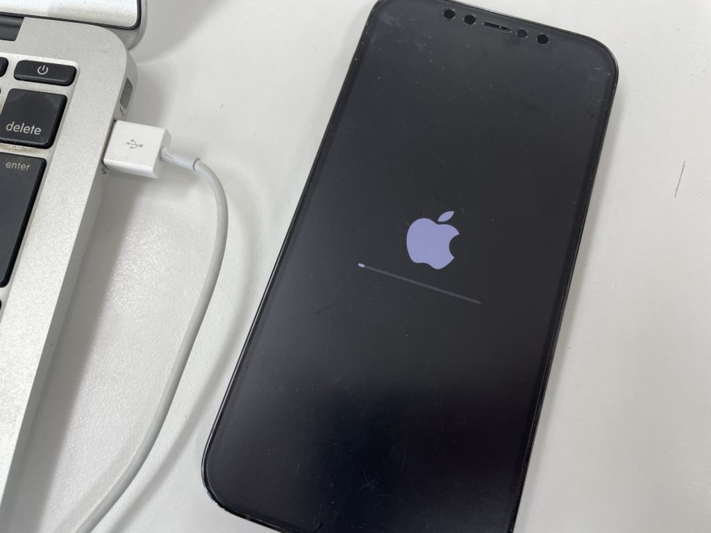 パソコンに接続しiTunesで操作していた時に途中で本体からケーブルを抜いてしまい画面がリンゴマークの下にバーが表示された状態のままフリーズ、何時間経っても変わりないとの事でした。