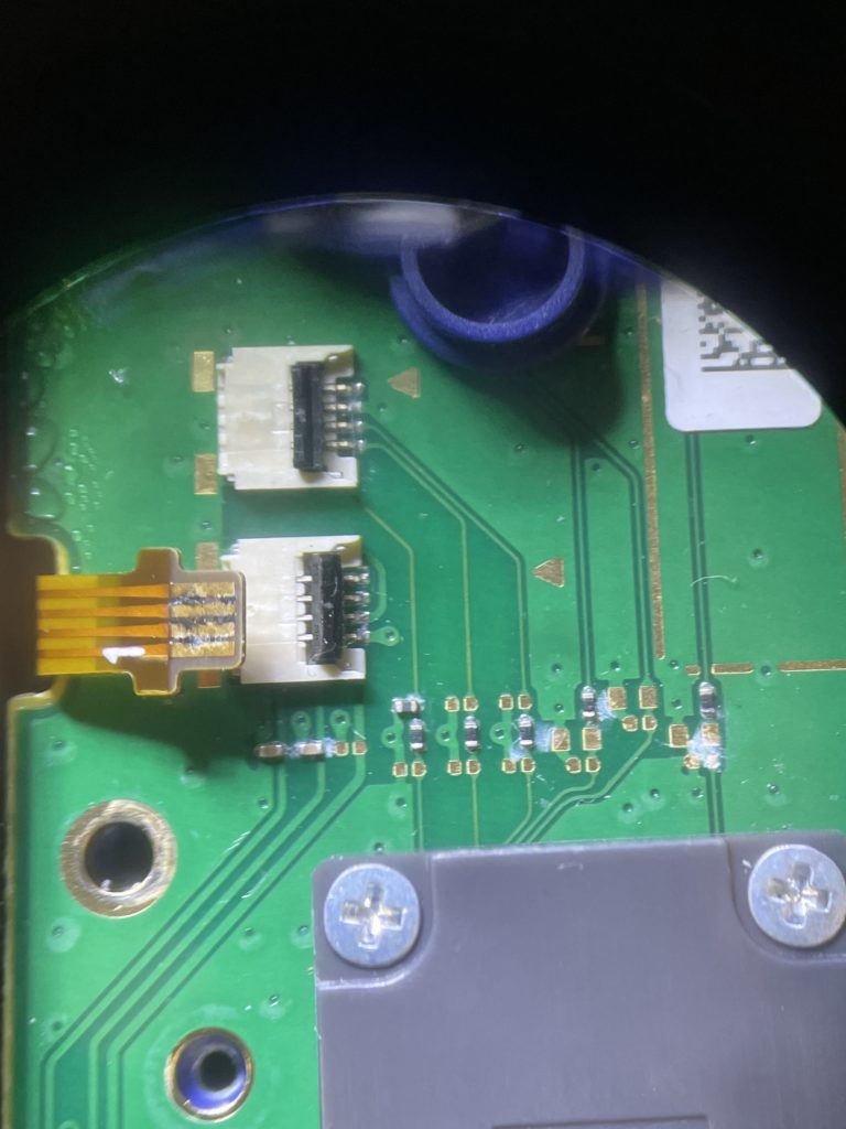 内部は特にサブ基板側がびしょびしょに濡れている状態で一部腐食やバックライトのケーブルが黒く焦げているなどございましたがクリーニングのみで無事に復旧し先ほどまでLボタンを押すとスリープになっていた症状も改善しました。