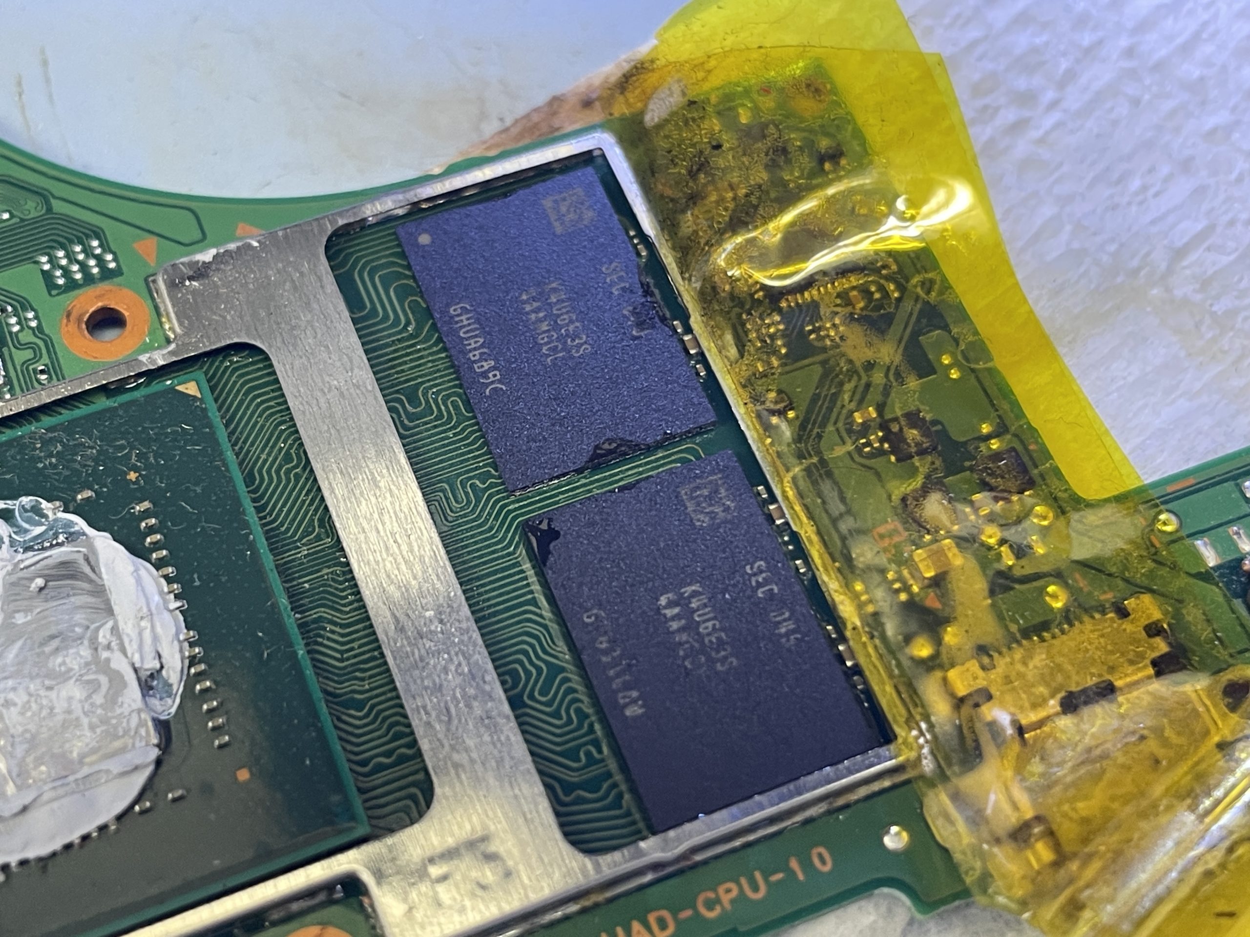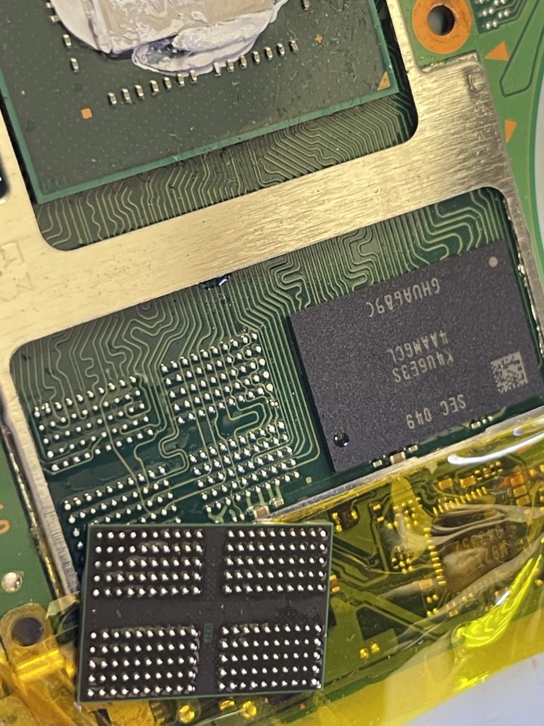 メモリを取り外し基板側、IC側それぞれ綺麗にクリーニングを行い再度ICに200個の小さな半田ボールを均等正確にリボールし基板に実装します。
