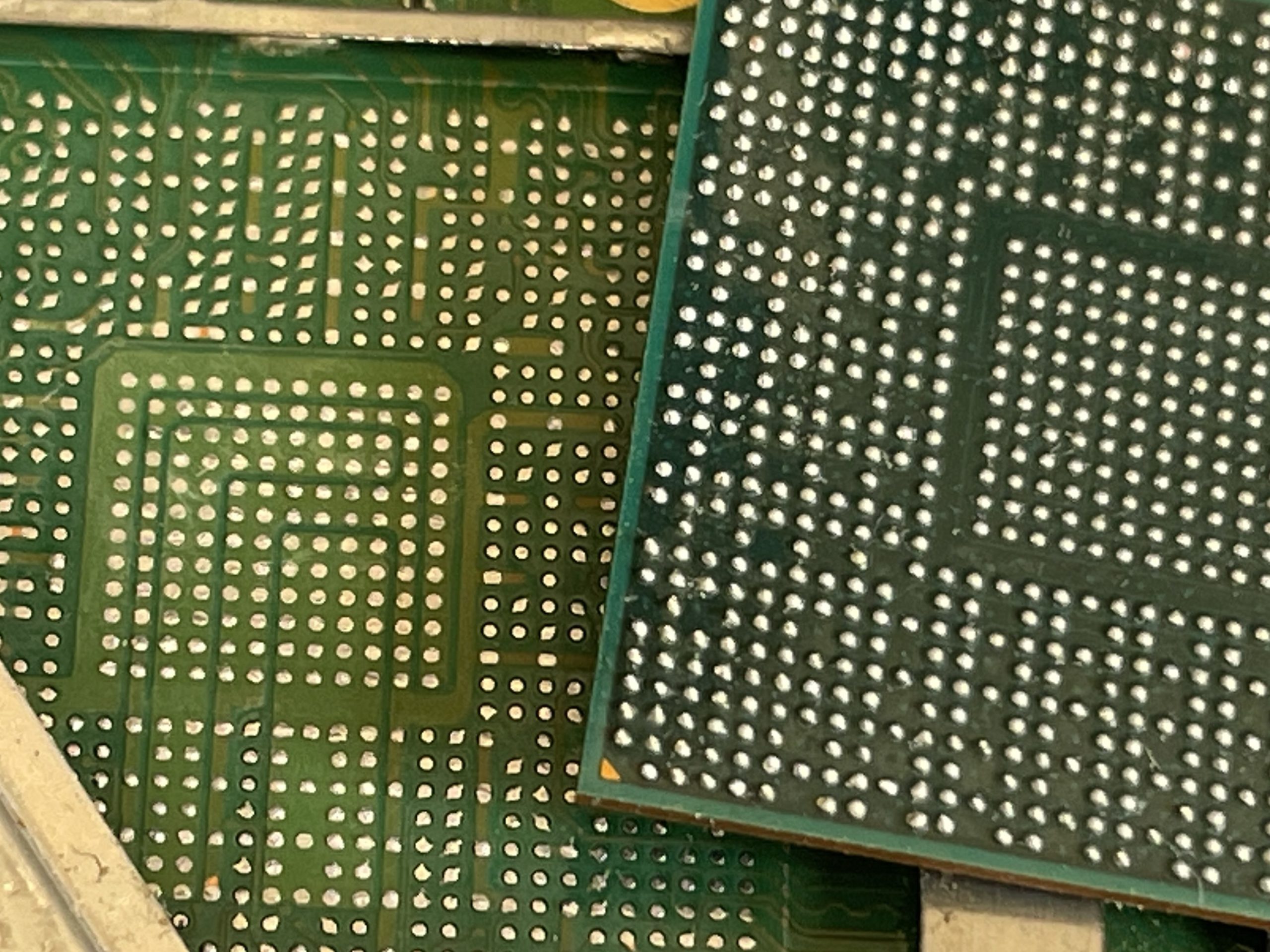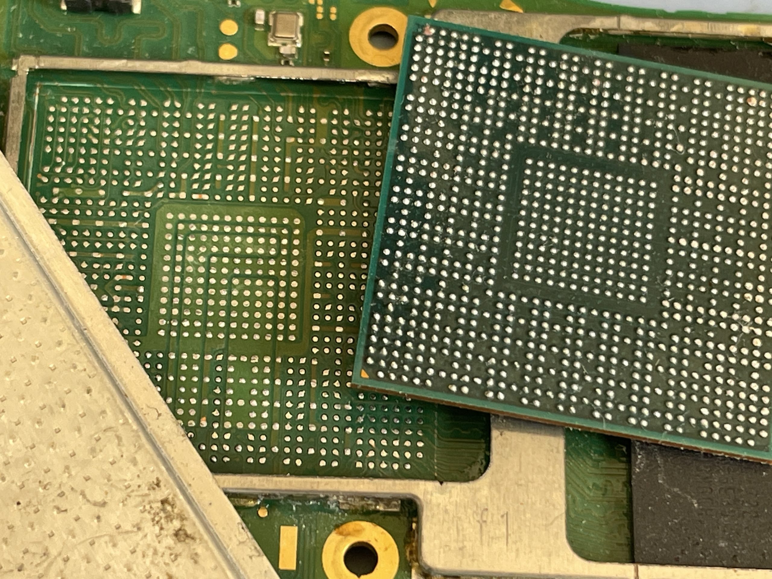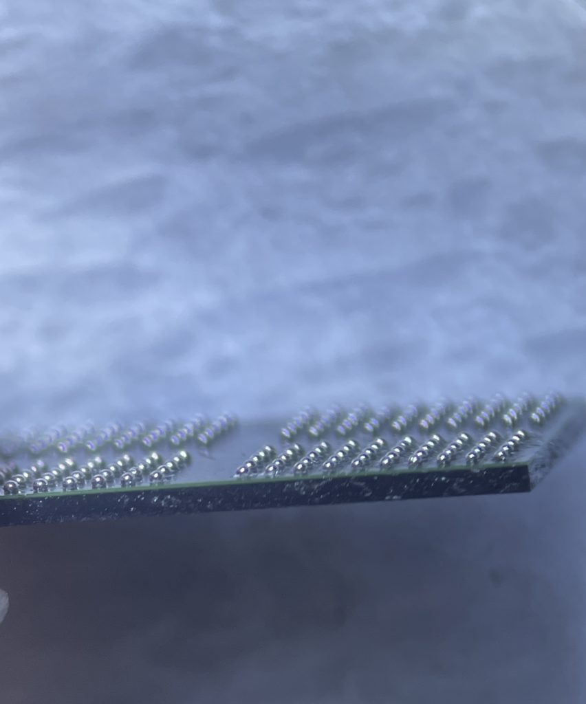 続いてCPUも取り外し基板側、IC共に綺麗にクリーニングを行い1000個程ある小さな半田ボールを再度ICにリボールし基板に実装します。