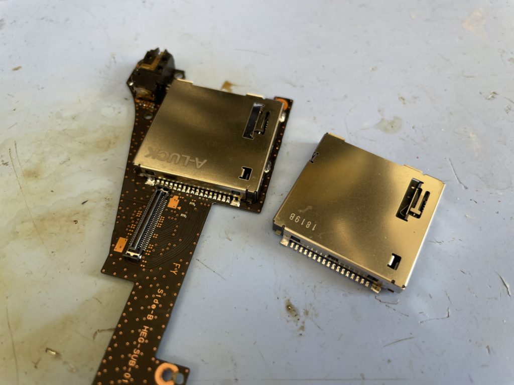 この状態ですとカセットの読み込みが出来ないのはもちろん、その後にカセットを入れてしまうとソフト側の端子も傷付いてしまい破損する恐れもあります。