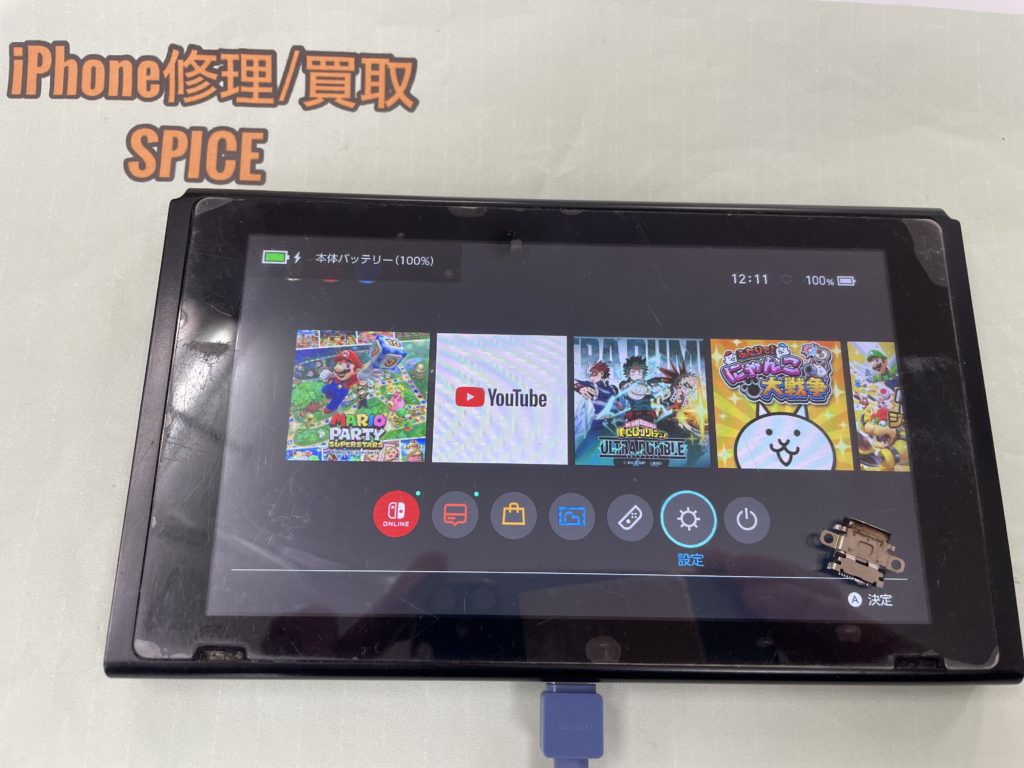 高砂市より任天堂Switch 起動するものの充電コネクターが損傷しかろうじて充電出来る状態でご来店です。