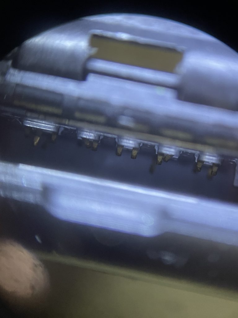受付時にカセットスロット内を確認すると内部の端子が4本変形し折れ曲がっているのが確認出来ました。