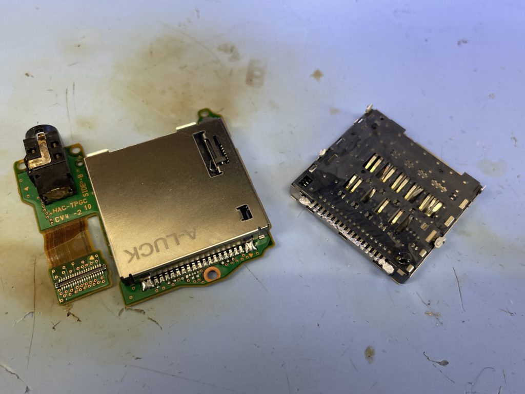 この状態ですとカセットの読み込みが出来ないのはもちろん、その後にカセットを入れてしまうとソフト側の端子も傷付いてしまい破損する恐れもあります。