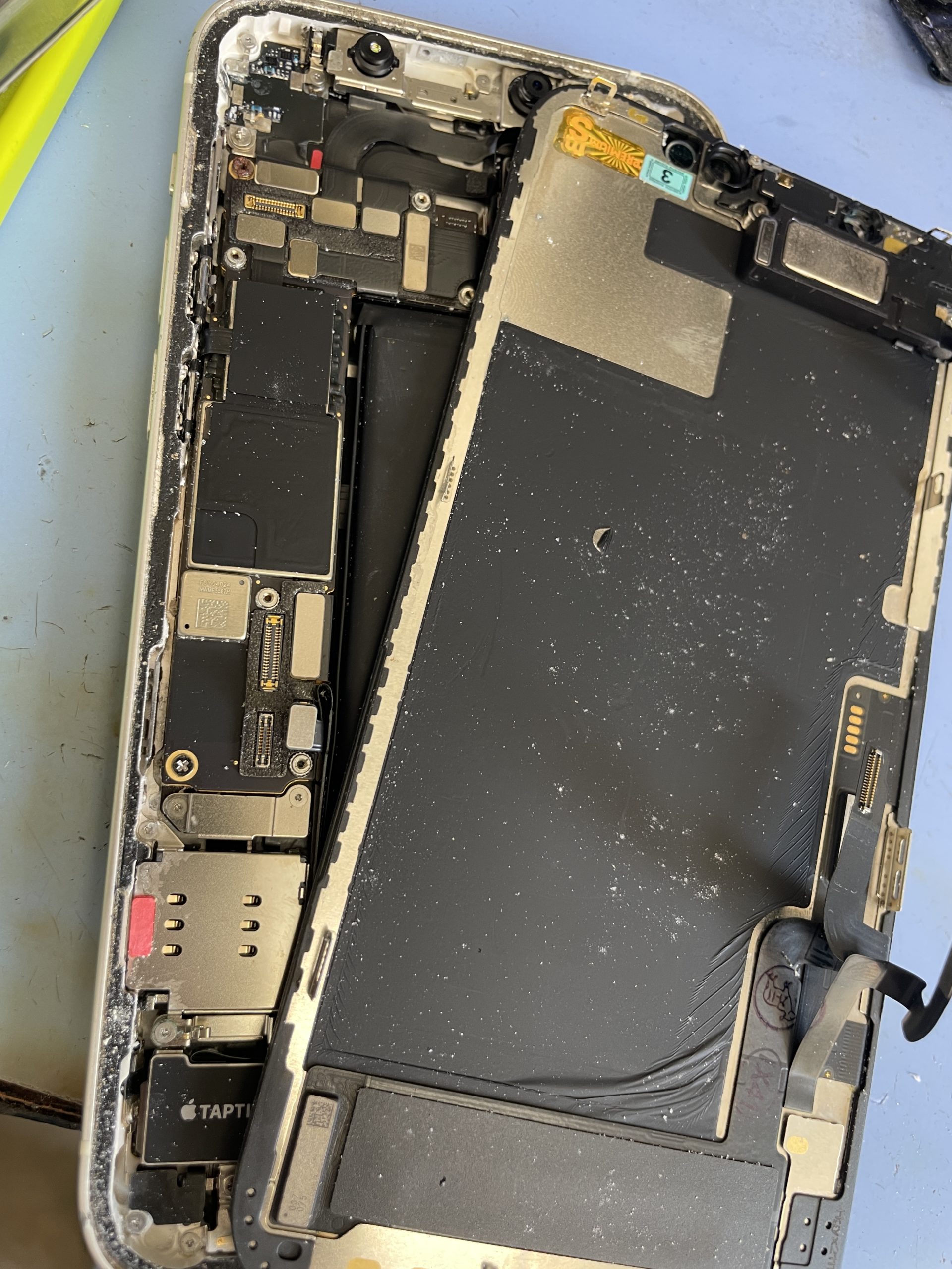 海外で2カ月ほど前に海へ水没し現地で画面を修理し一旦は復旧したそうですがすぐに画面表示がおかしくなり映らなくなったようでデータ復旧希望でご来店です。