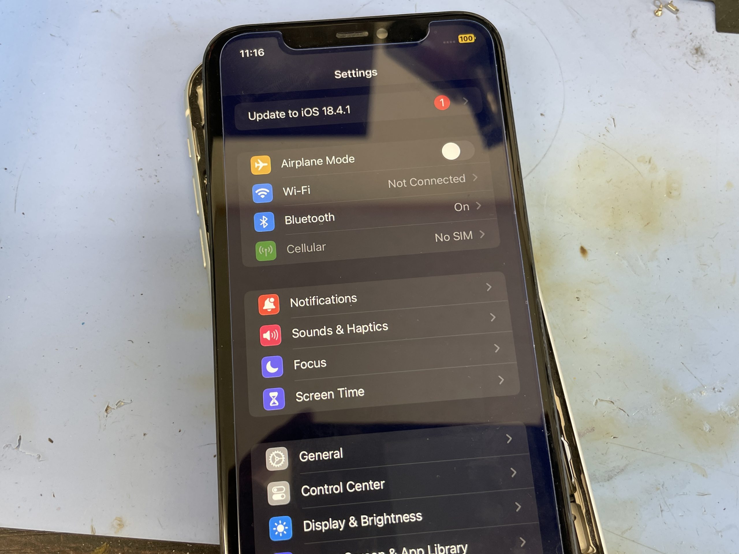 受付時に強制再起動や充電ケーブルを繋いでの反応など確認しますが全く反応がありませんので当店でも一旦分解し原因の特定を行います。