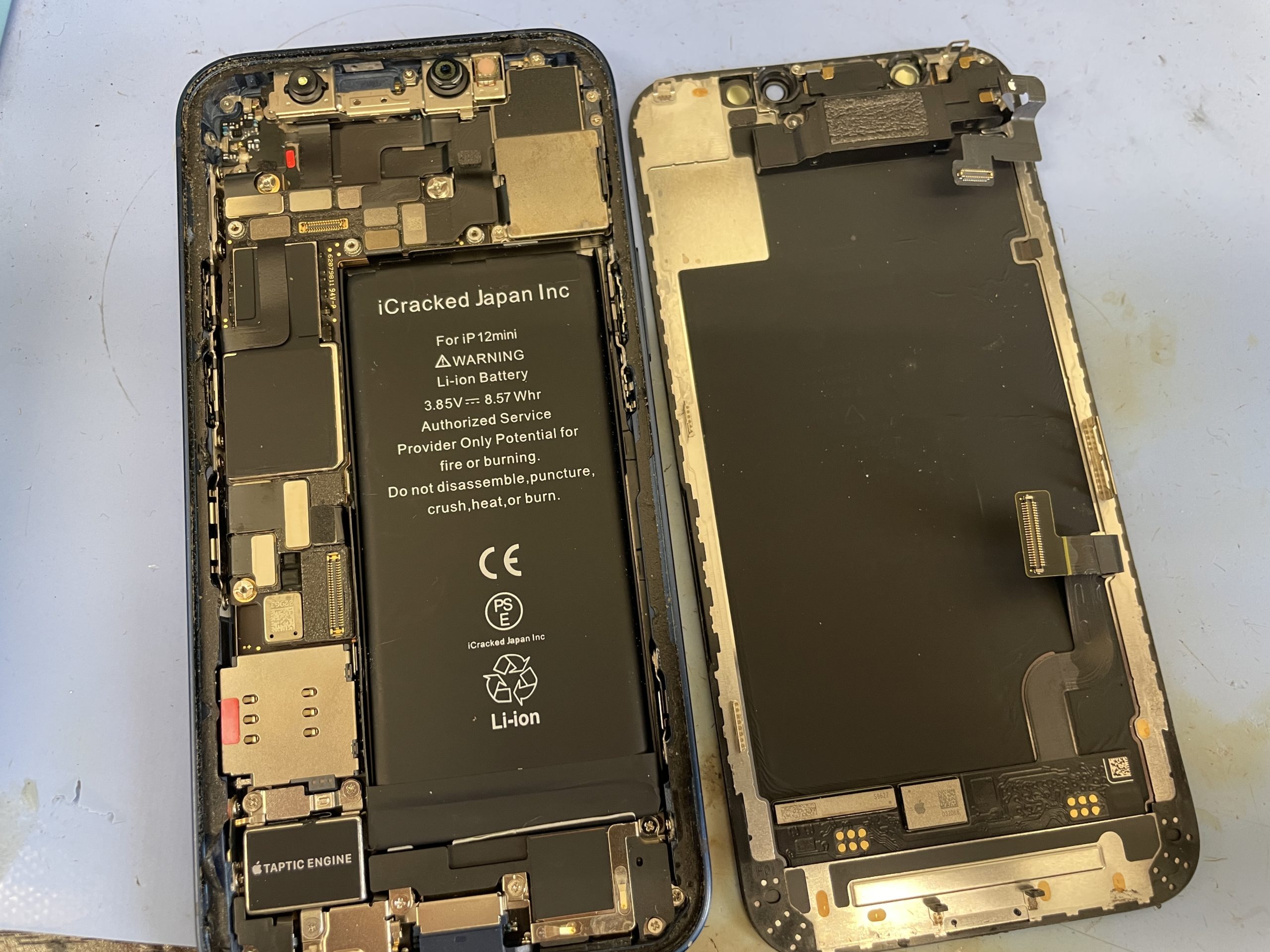 画面パーツは損傷し映らなくなっておりましたので交換が必要ですが今回はとりあえず操作さえ出来ればいいそうですので料金かけて新しい画面に交換ではなく当店が修理の際に取り外しした画面に少し縦線が入っている画面がございましたのでそちらを取り付けご希望でした。