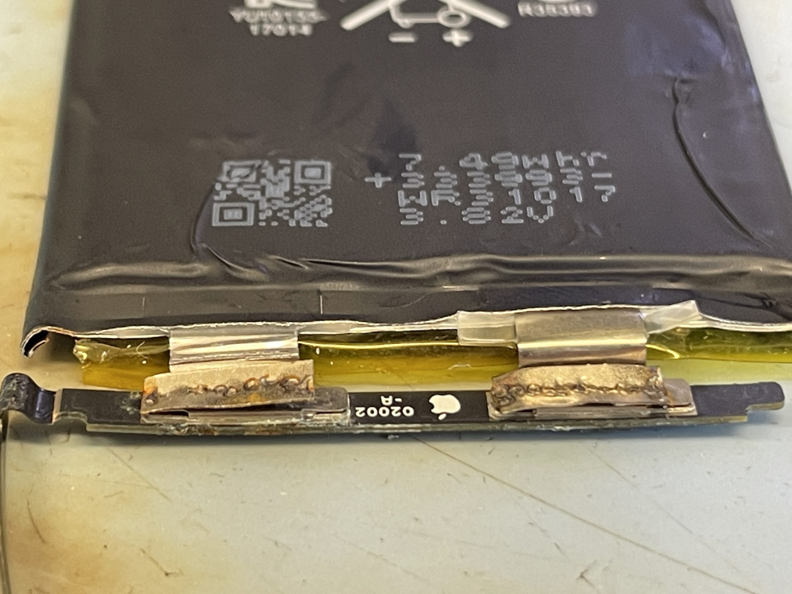 その際、不明な部品との表示が出ない方法があると案内されて追加料金払われ交換したそうですがバッテリーの基板とセルの溶接が下手でほぼ外れかけている状態でした。