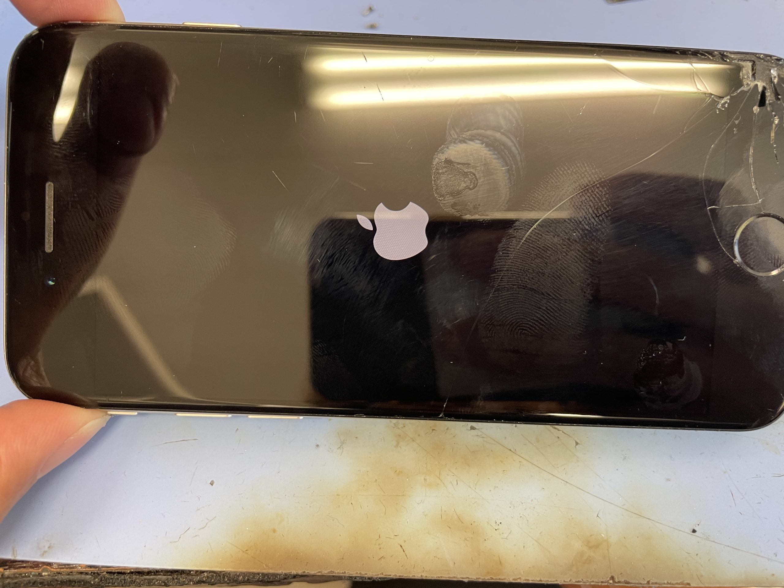 画面が割れている状態で使用されており海水へ水没、その後しばらくは動作不良ありながらも起動していたそうですがリンゴマークが点滅し起動しなくなりご来店です。
