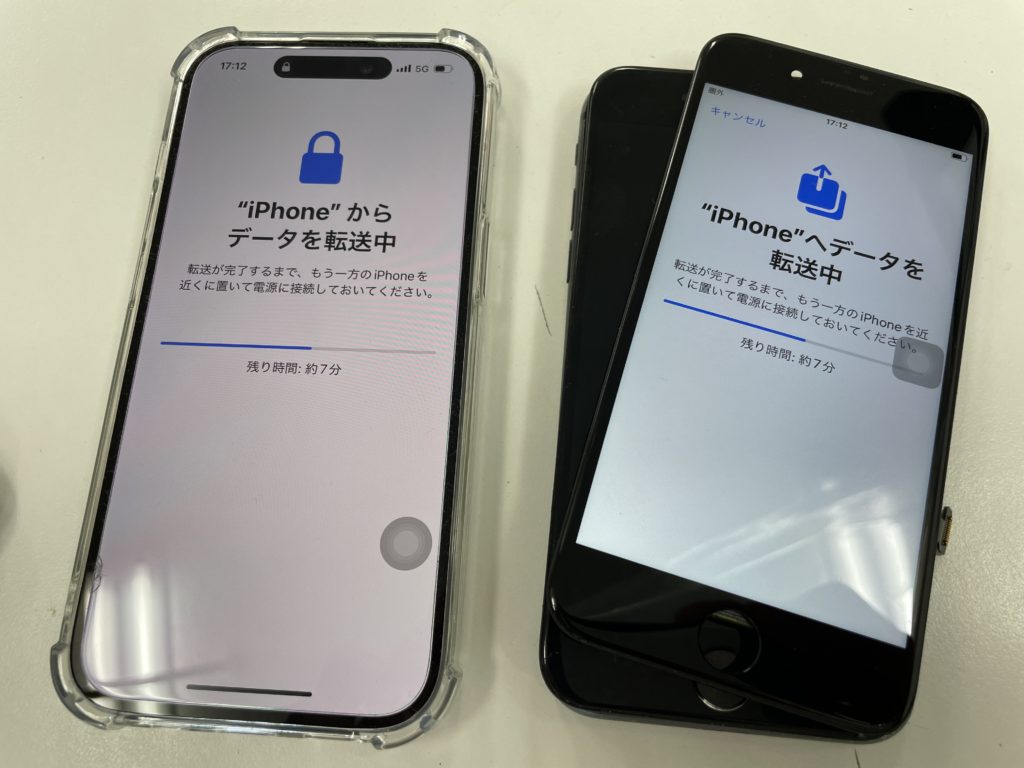 まずは分解しテスト画面を取り付け一時的に操作出来る状態にしてからお持ち頂いたiPhone15 データを移行させLINEの引継ぎなどを行い40分程で作業完了です。