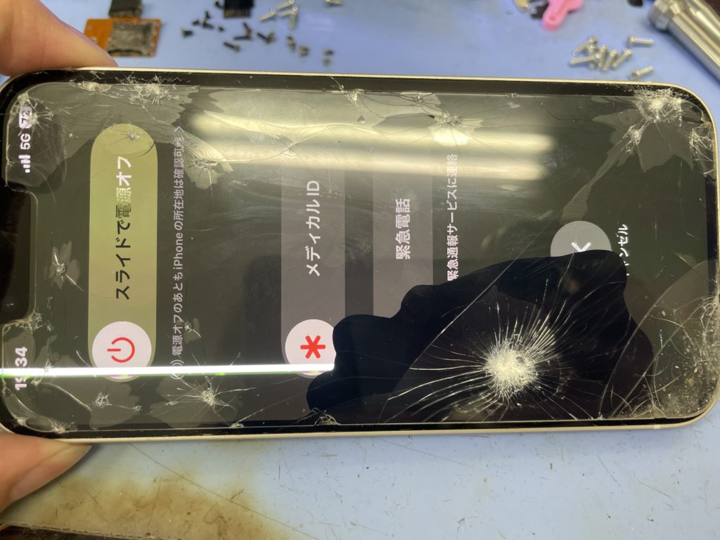 画面が激しく損傷し表示不良、タッチ操作も効かない状態でした。