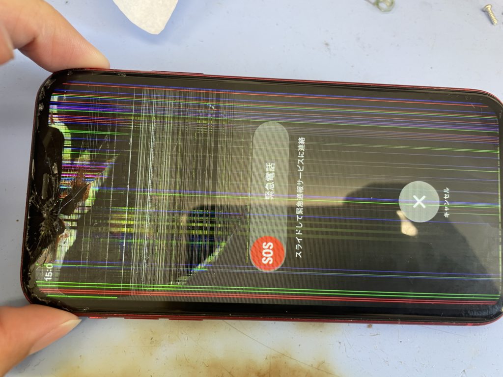 ガラス割れの影響で一部液漏れし黒くなっておりましたが15分程で新しい画面に交換し15分程でデータそのまま修理完了です。