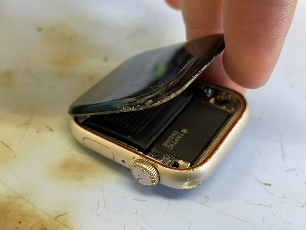 加古川市よりApple Watch ガラス浮きにてご来店です。以前、他店で画面の修理をされたそうですがガラスが浮いてきたようでご来店です。