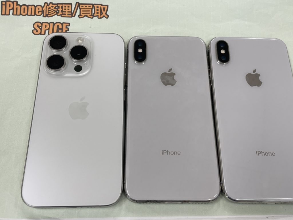 iPhone15Proは小傷程度で良好な状態、iPhone Xは2台とも画面に不良がございましたが問題なく買取成立です。