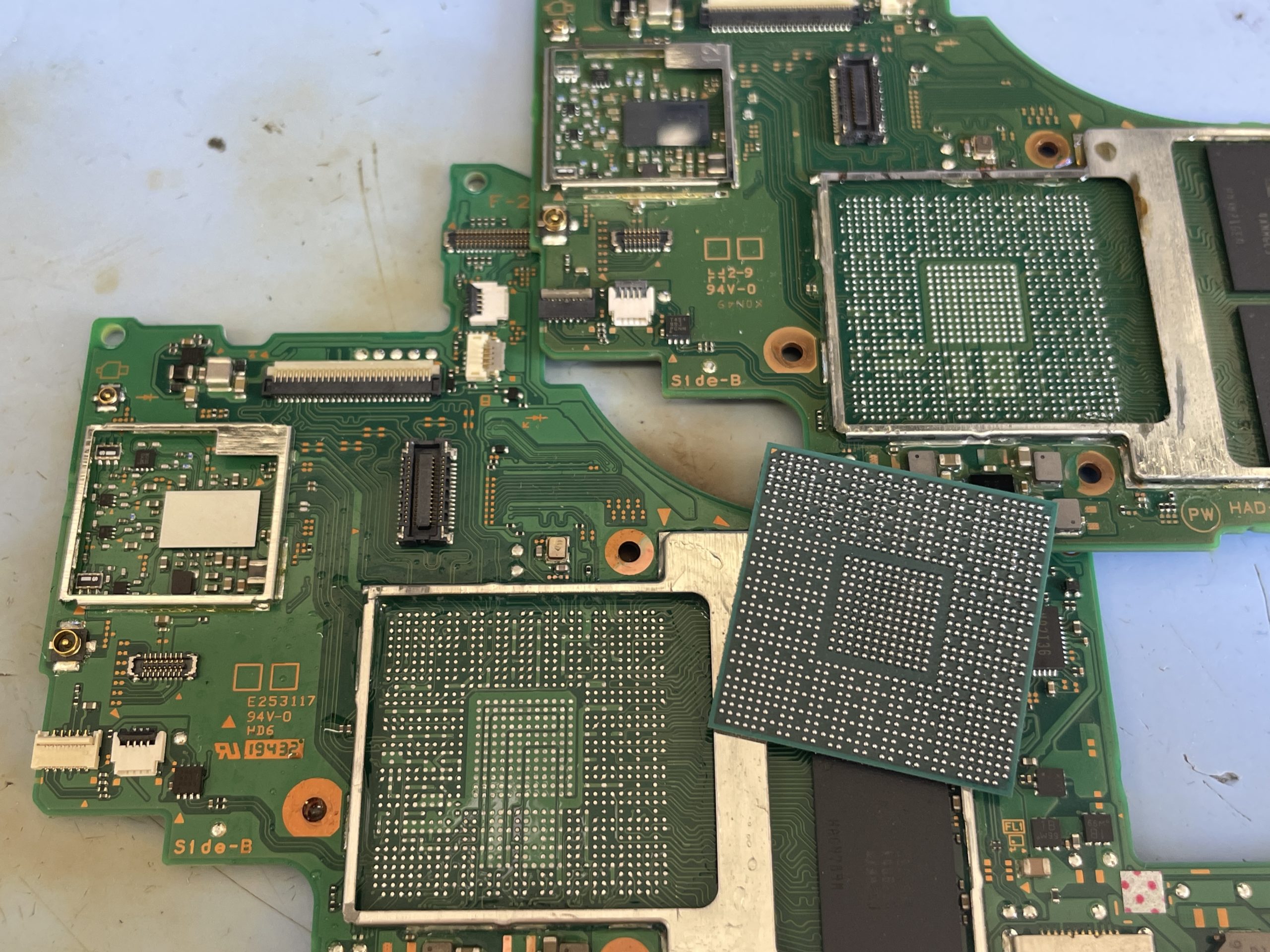今回は基板の状態が非常に悪いと判断し最終手段である正常な基板にCPUなどの重要なICを移植する作業を行います。