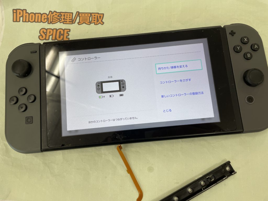 20分程で新しい部品に交換しジョイコン取り付けるとしっかり反応するようになりましたので修理完了です。