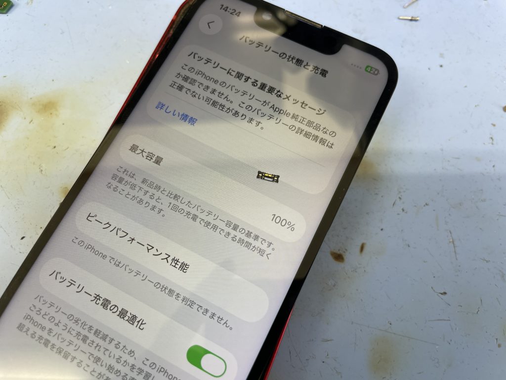受付時に端末の点検をさせて頂くとバッテリーの最大容量も読み取れておらずバッテリーを認識出来ていない状態でした。
