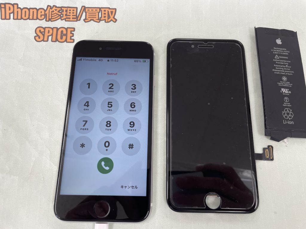 画面の右端縦の1列がタッチ反応しない状態、劣化したバッテリーも交換ご希望でした。
