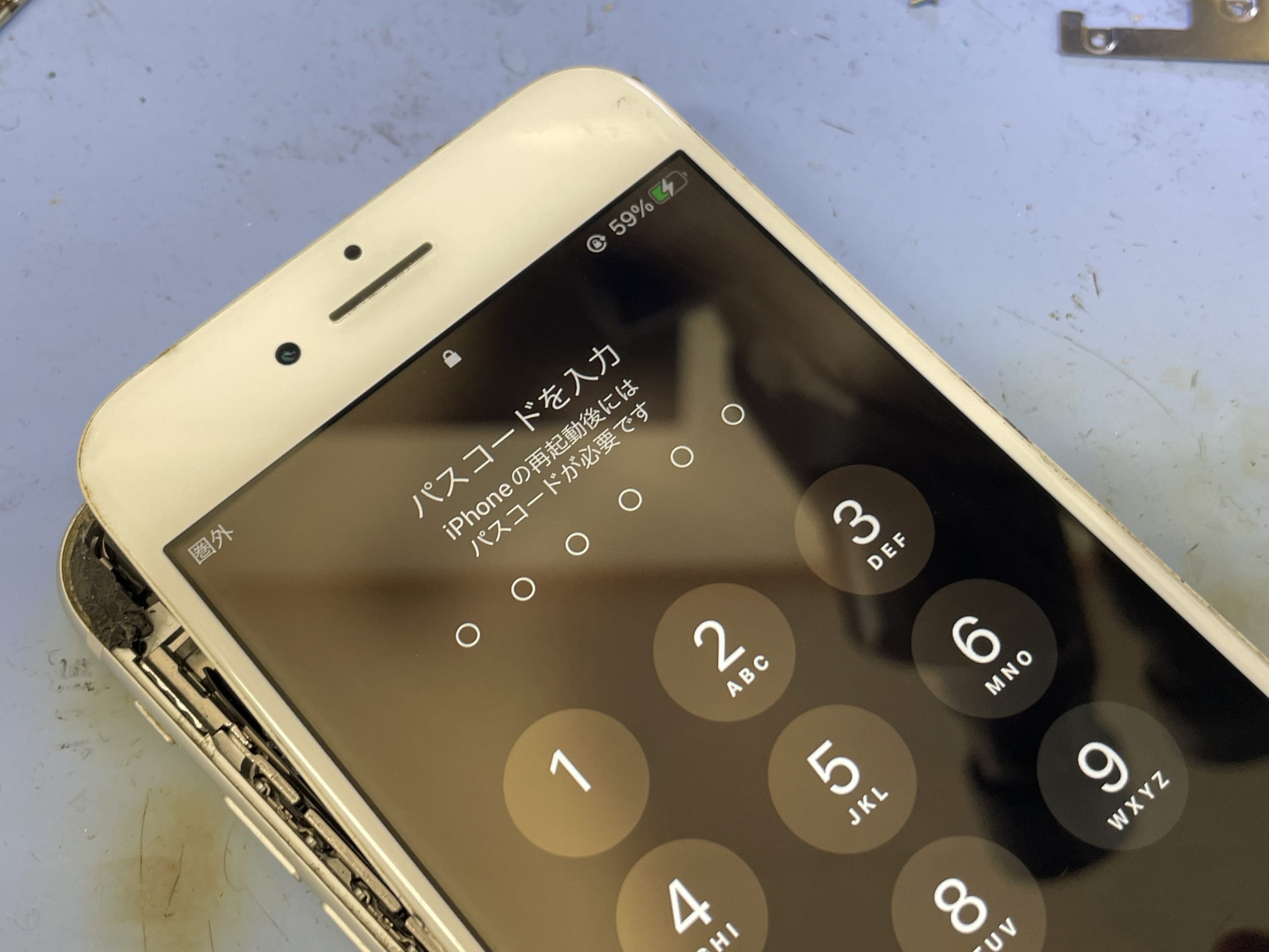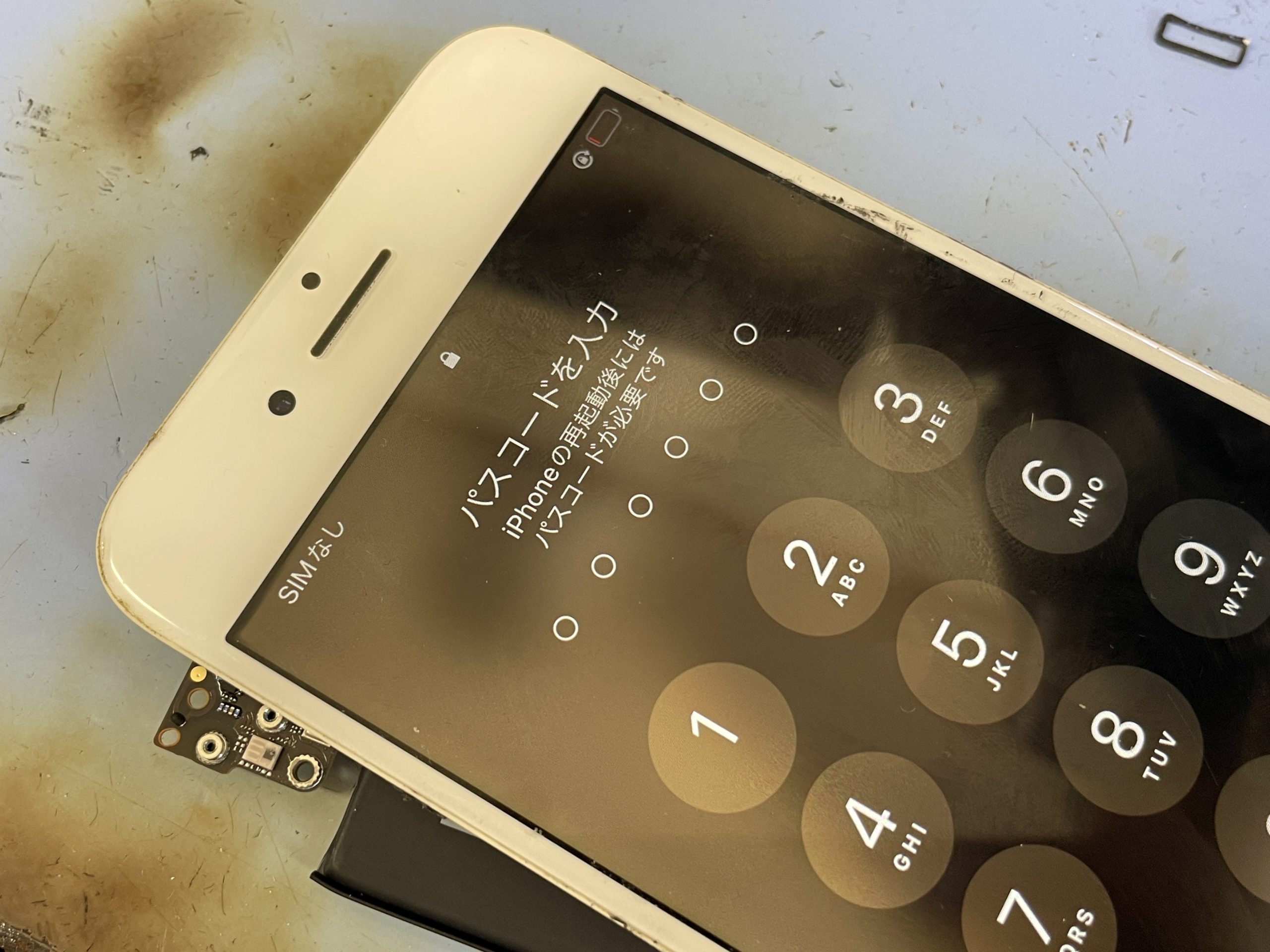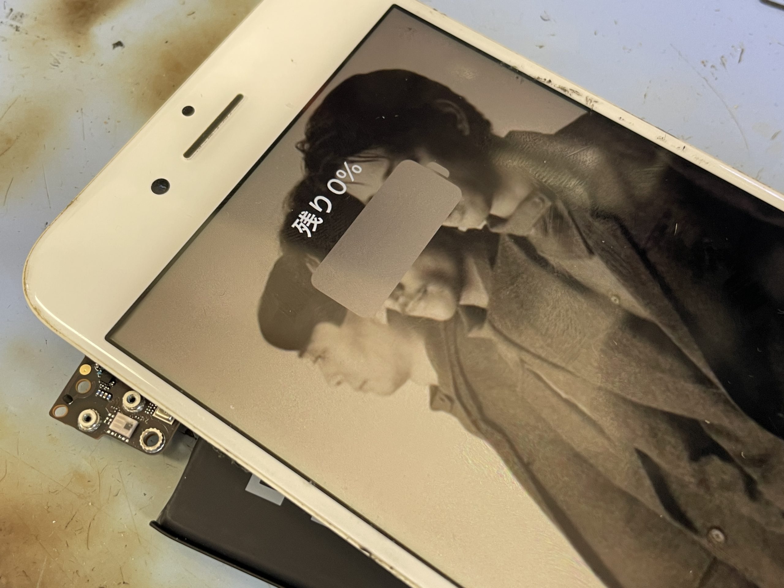 他店でバッテリー交換をされておりましたがバッテリー残量が読み込めず充電ケーブルを繋ぐと0%となり充電マークも出ない、3分程で勝手に再起動するなど起動不良の状態でご来店です。