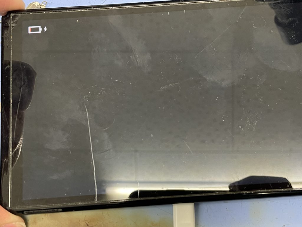 一旦分解しテスト用のバッテリーを取り付け起動出来るか確認しますが最初の1回目のロゴが出たあとそのまま真っ暗になり起動しません。