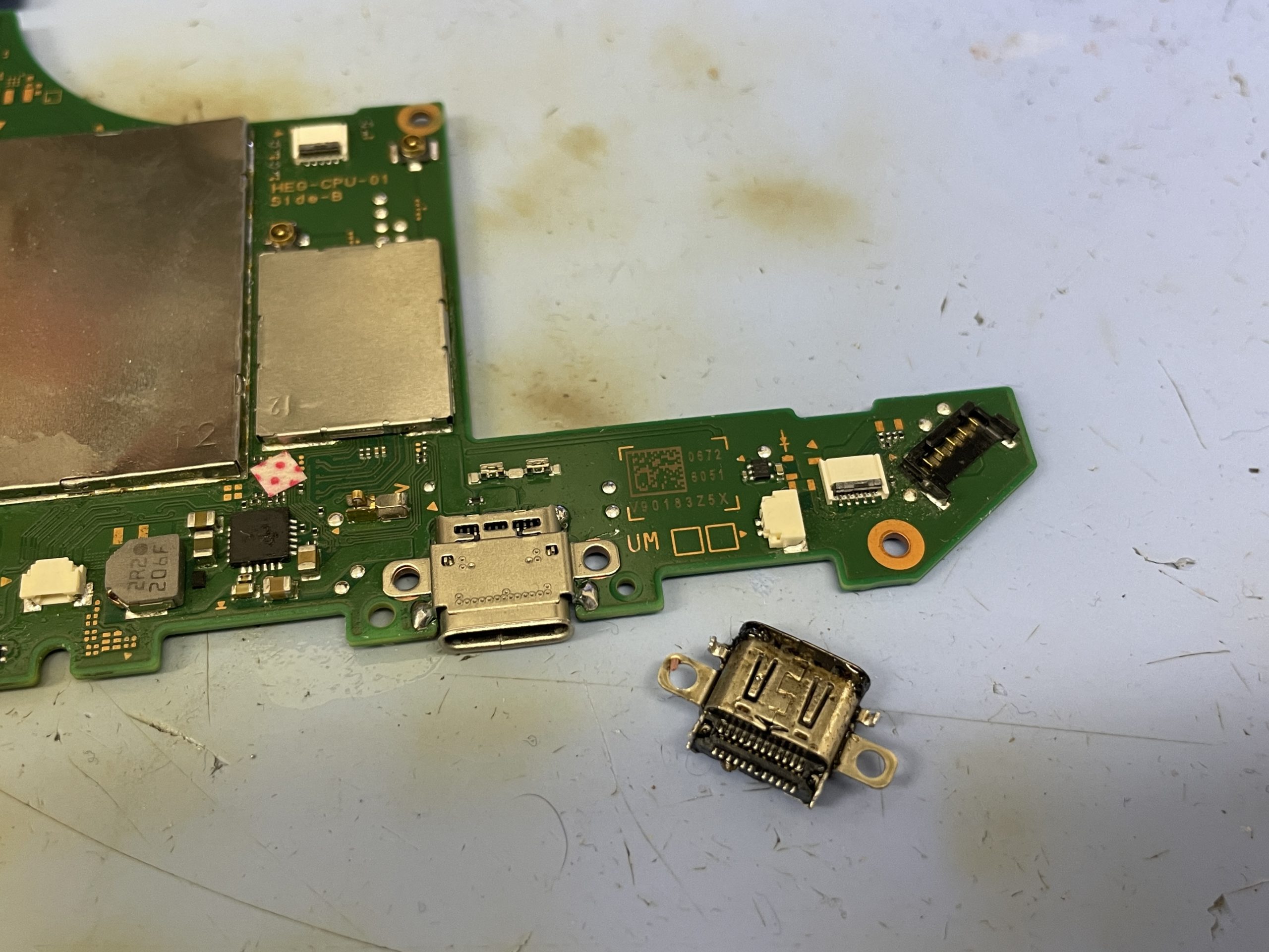まずは損傷している充電コネクターを交換し基板の点検を行います。